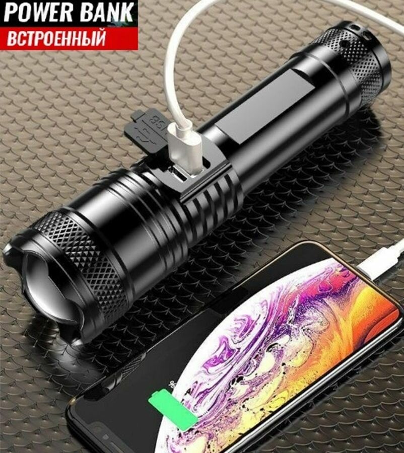 Фонарь ручной аккумуляторный / Сверхмощный лазерный светодиод /Встроенный пауэрбанк интересное: