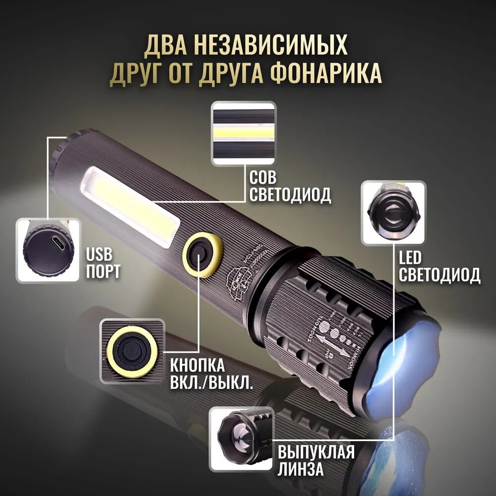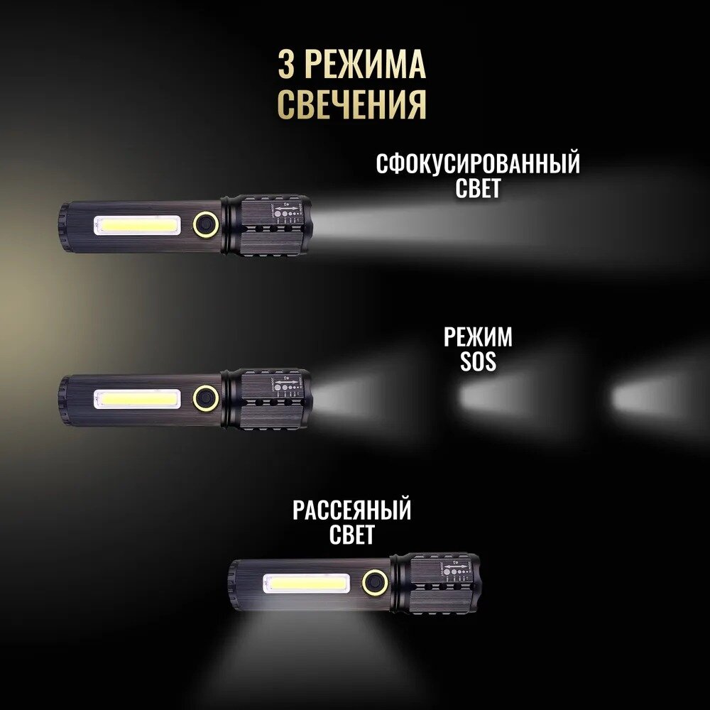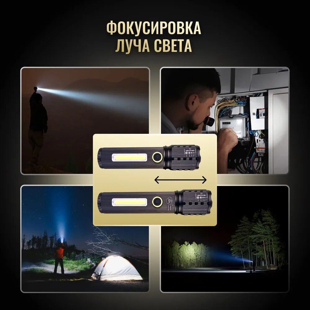 Фонарь ручной аккумуляторный на магните, с зарядкой micro USB сверхъяркий/с регулировкой фокуса/для работы, походов интересное: