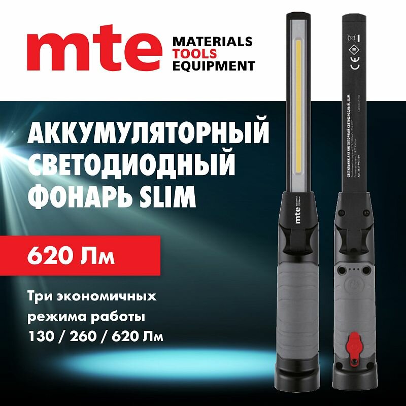 Фонарь аккумуляторный светодиодный led slim usb, mte интересное: