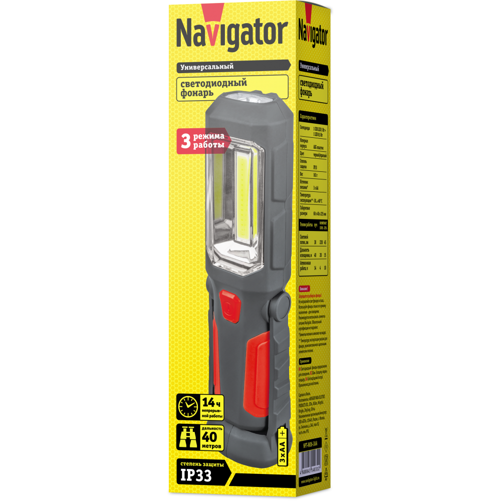 Фонарь Navigator 14 031 NPT-W06-3AA для работы 1LED(0.5Вт)+1COB LED(3Вт), короб. интересное: