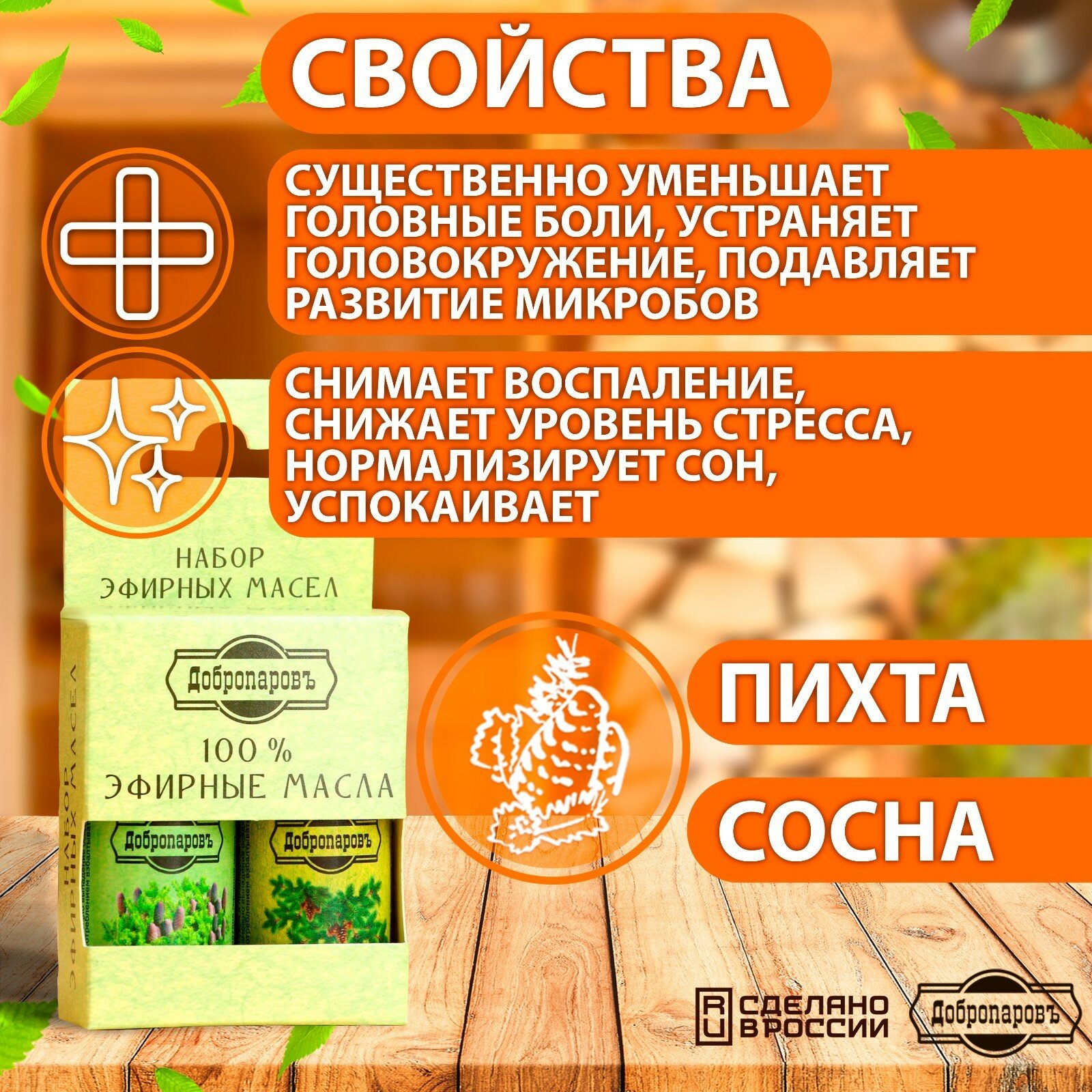 Набор эфирных масел пихта, сосна "Добропаровъ", 2 шт по 17 мл