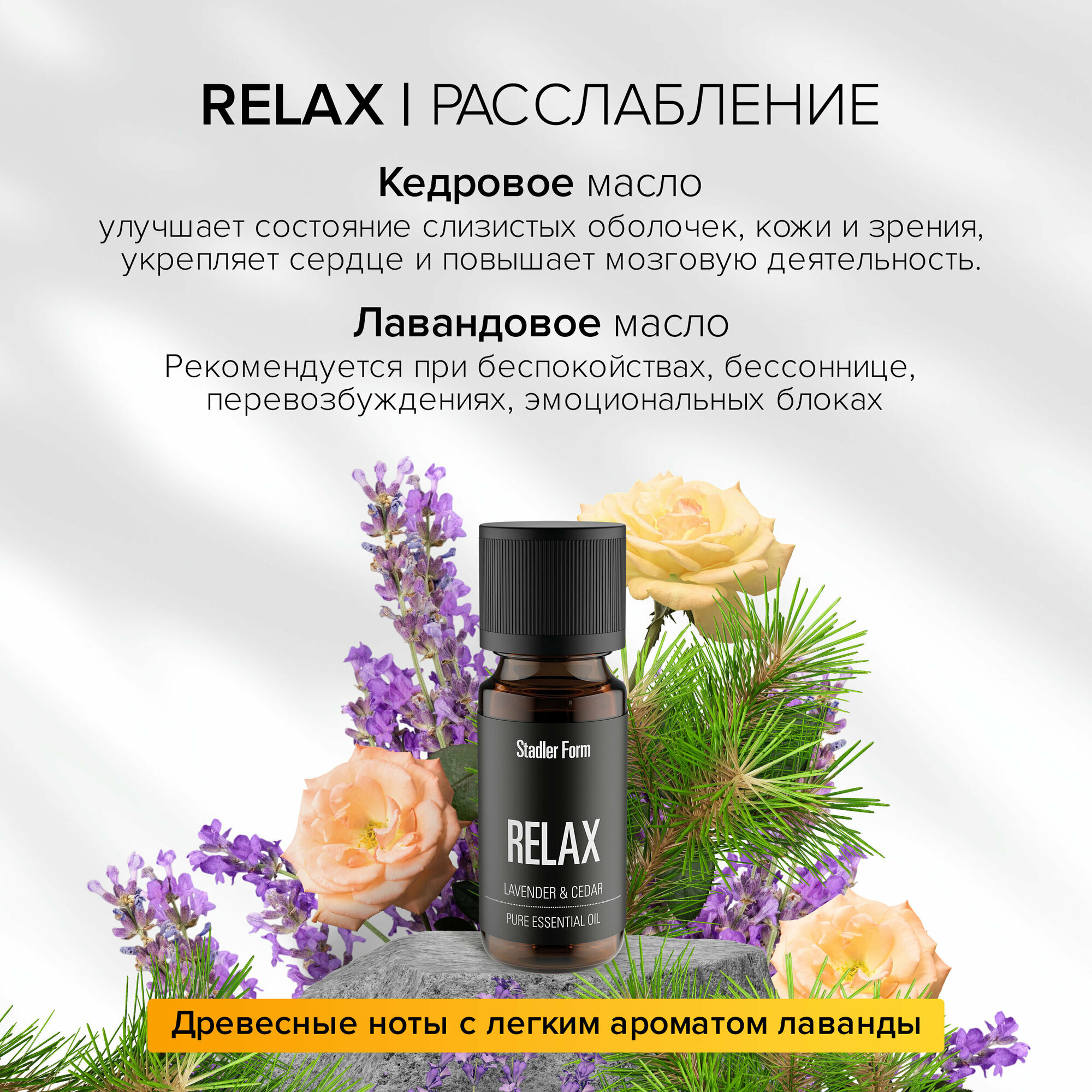 Эфирное масло Stadler Form Relax new, A-143, аромат кедра и лаванды, для дома, бани и сауны, 10 мл интересное: