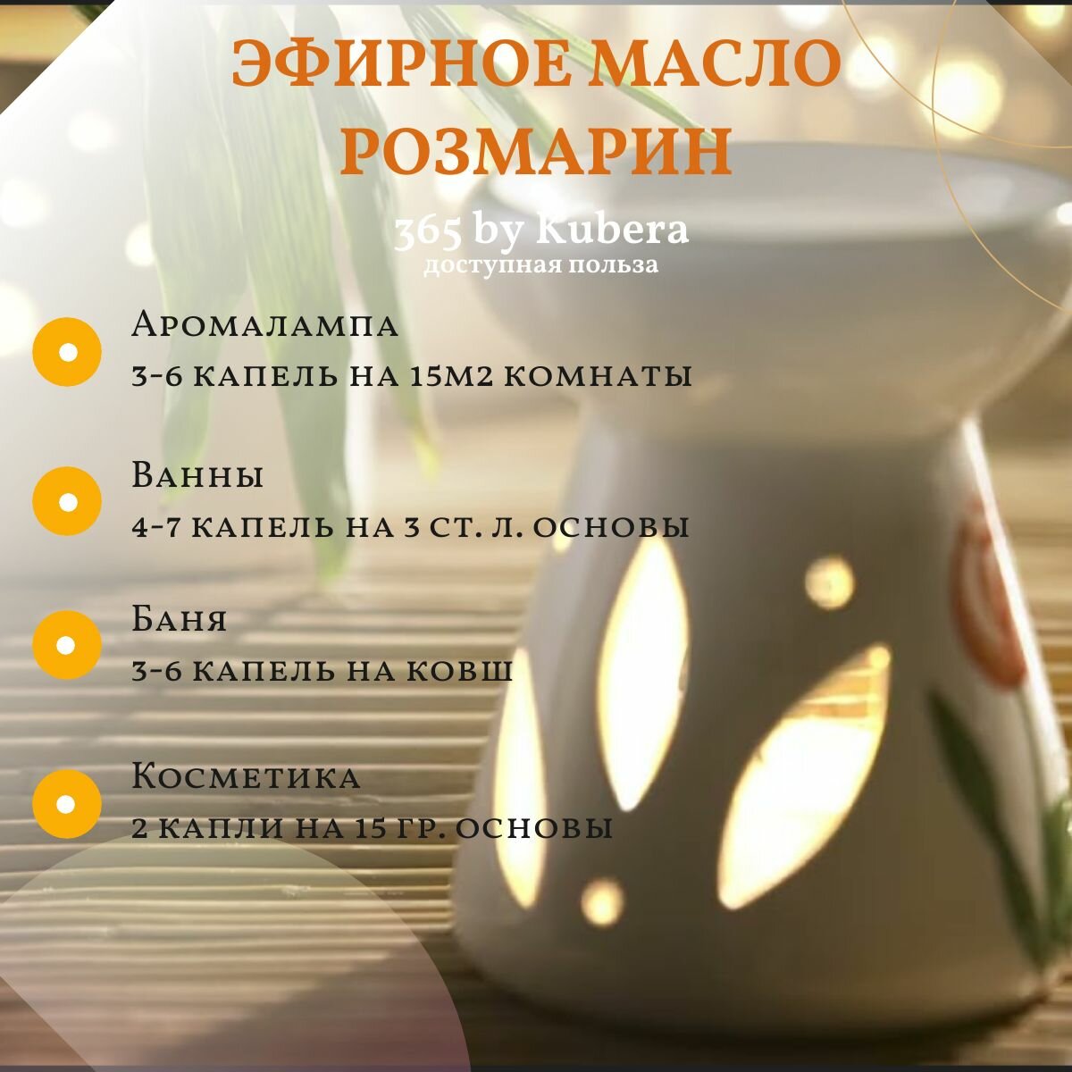 Эфирное масло розмарина для ароматерапии и аромадиффузоров 365byKubera, 10 мл интересное: