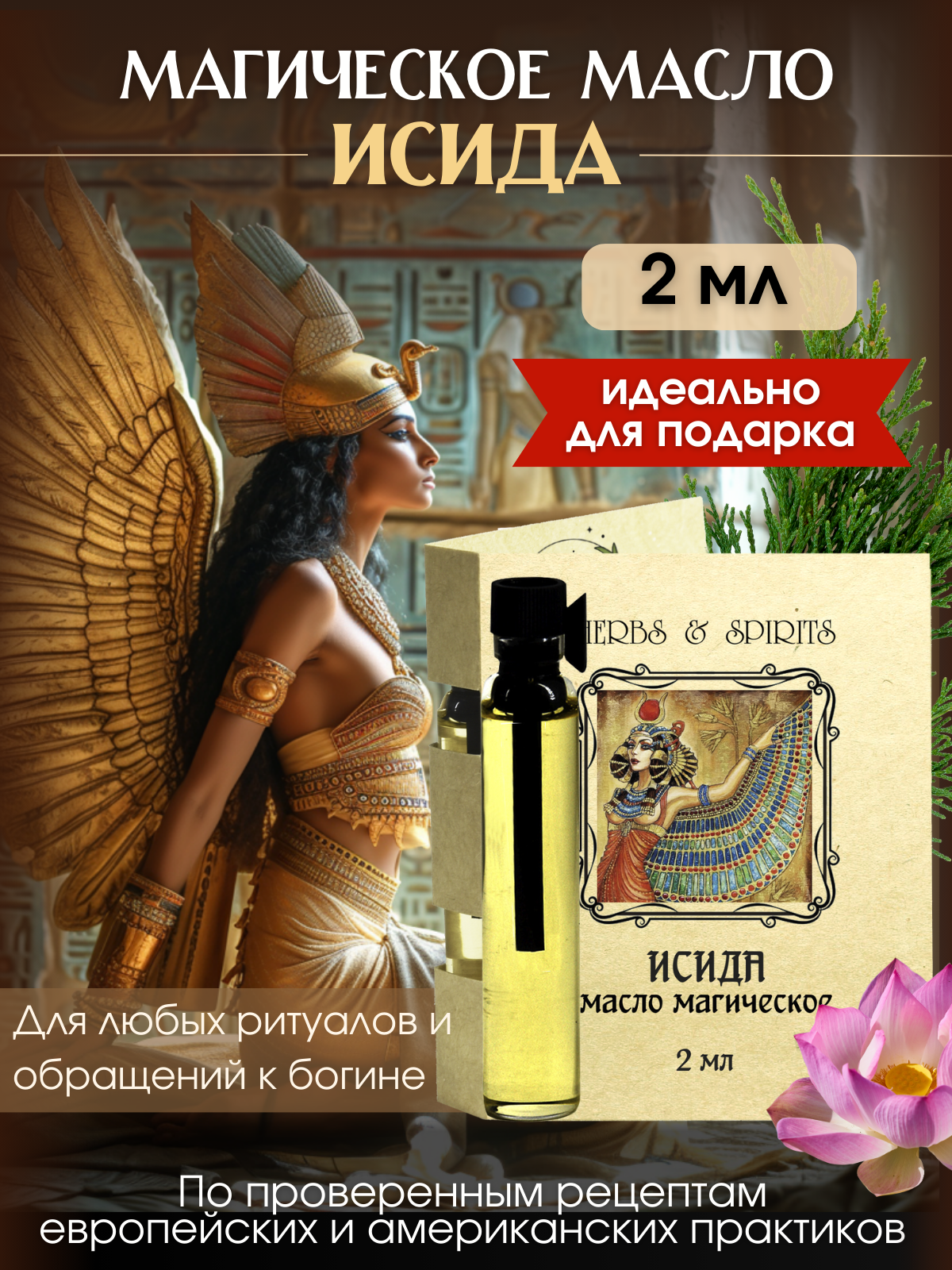 Купить Масло магическое Herbs & Spirits "Исида" (лотос, кипарис, ладан, герань) 2 мл