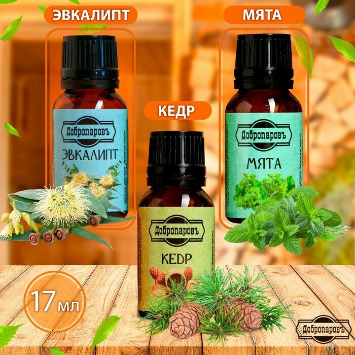 Набор эфирных масел эвкалипт, мята, кедр, "Добропаровъ", 3 шт по 17 мл, 4250951 интересное: