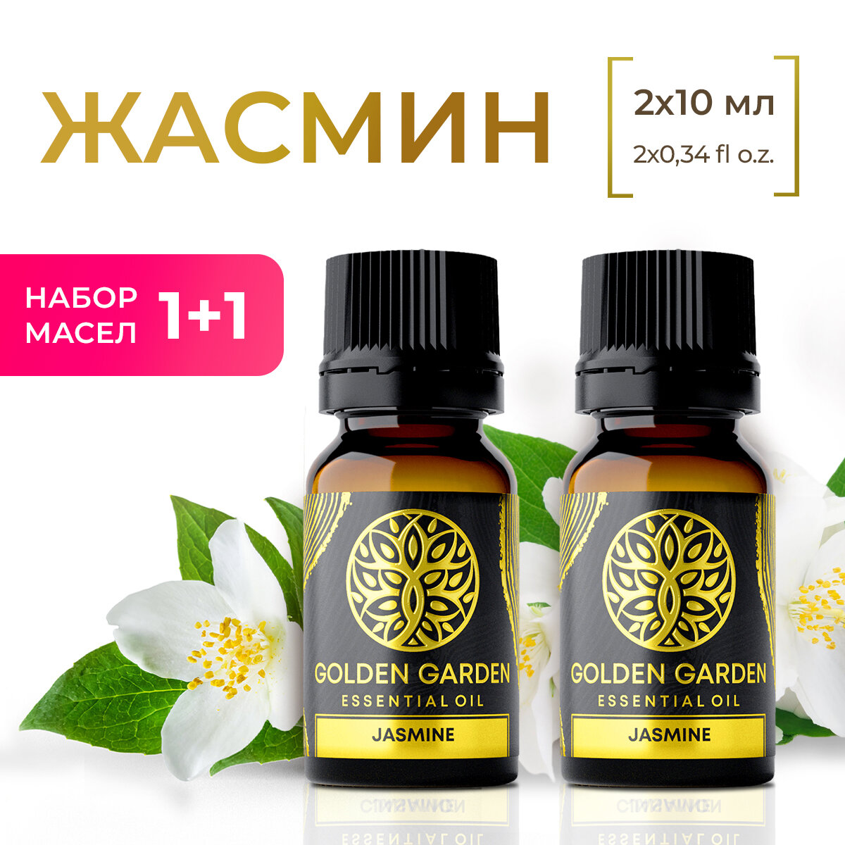 Купить Натуральное Эфирное масло жасмин 2 шт по 10 мл Golden Garden для ароматерапии, диффузора, бани и сауны