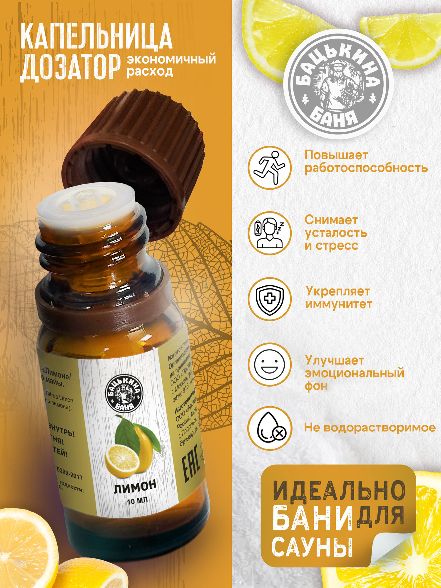 Купить Эфирное масло Лимон. Эфирные масла натуральные для бани, и сауны, увлажнителя воздуха, аромалампы, аромадиффузора.