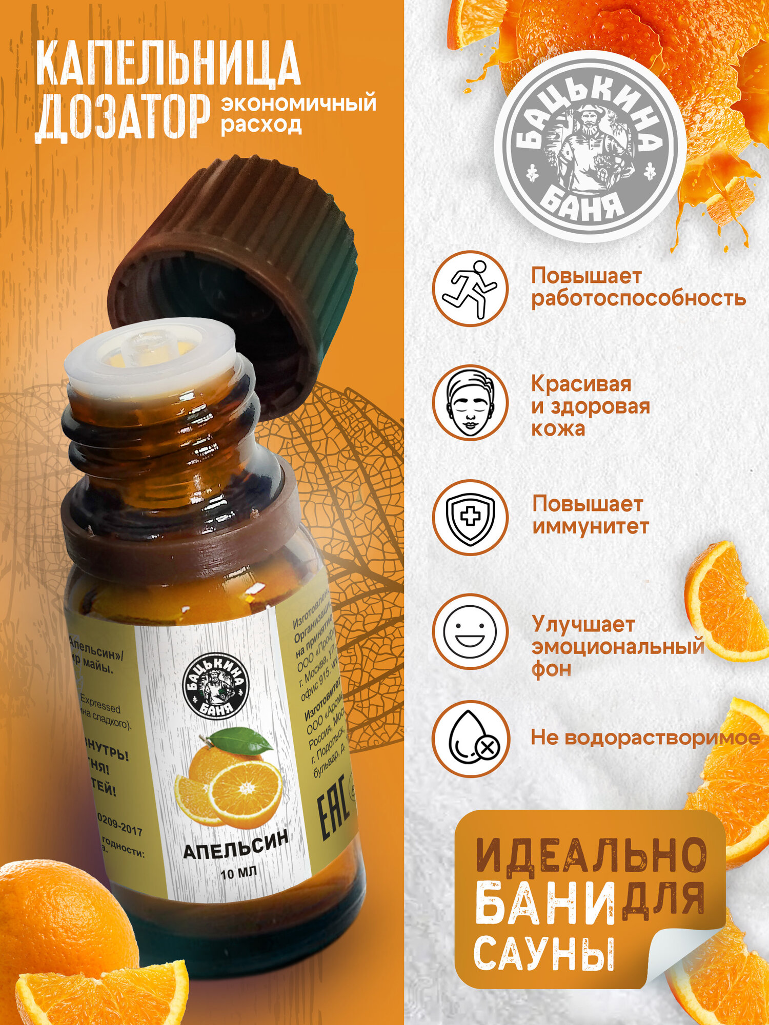 Купить Эфирное масло Апельсин 10 мл для бани сауны дома аромаламп увлажнителя ванны аромамасло