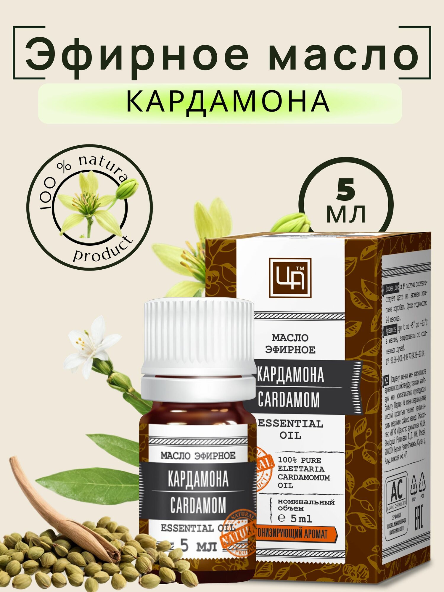 Купить Эфирное масло Царство Ароматов "Кардамон", для ароматерапии, 5 мл