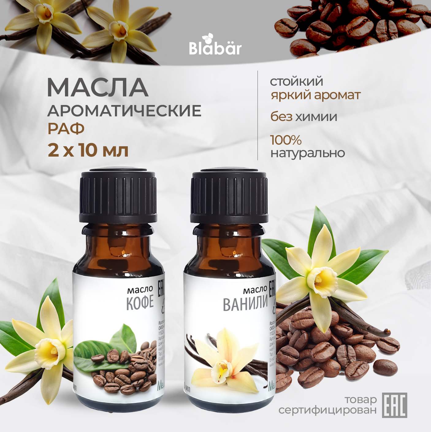 Купить Набор ароматических масел "Blabar", кофе, ваниль, 10 мл, 2 шт