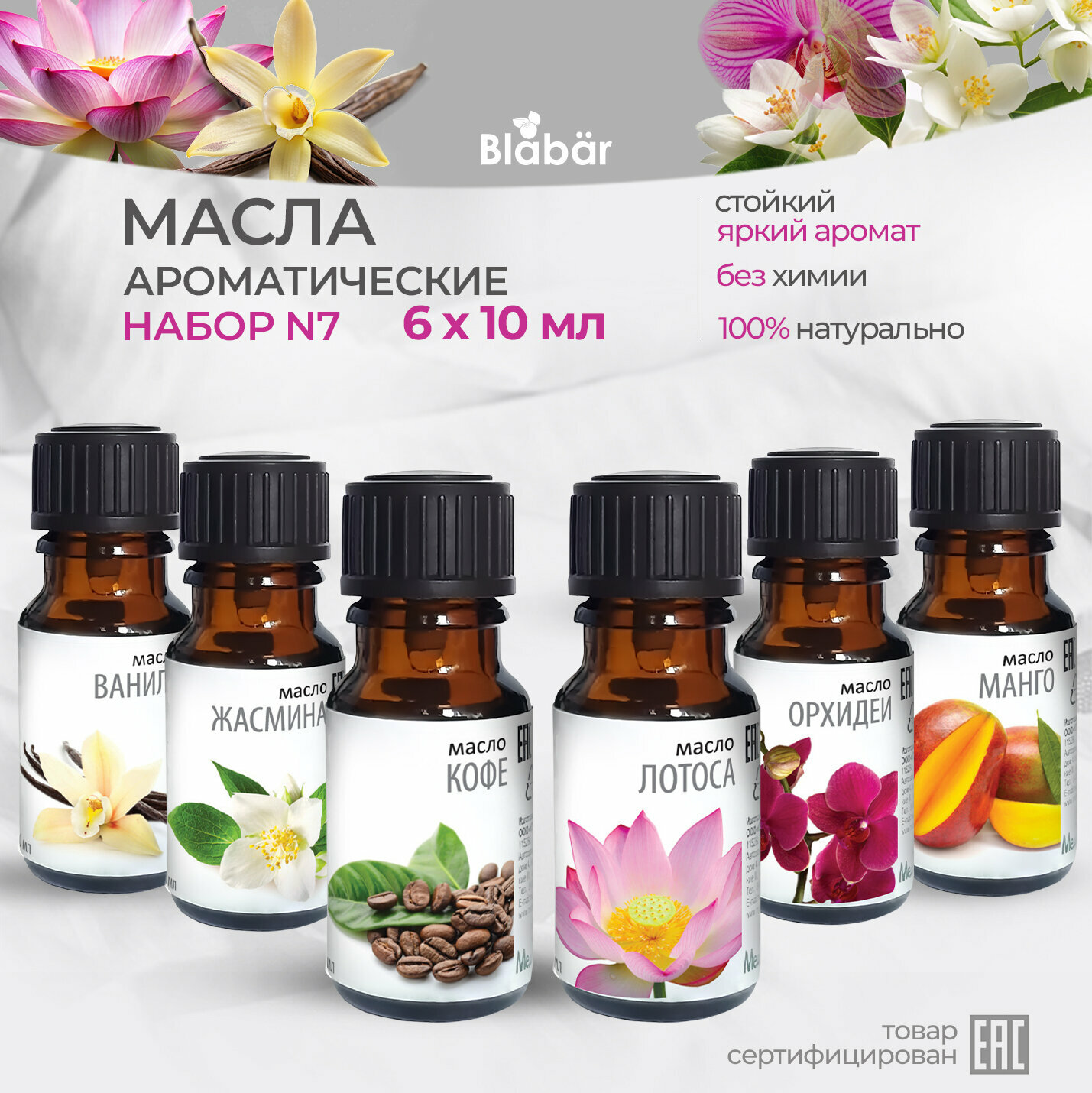 Набор ароматических масел Blabar василек , жасмин , ландыш , лотос , орхидея 10 мл, 5 шт