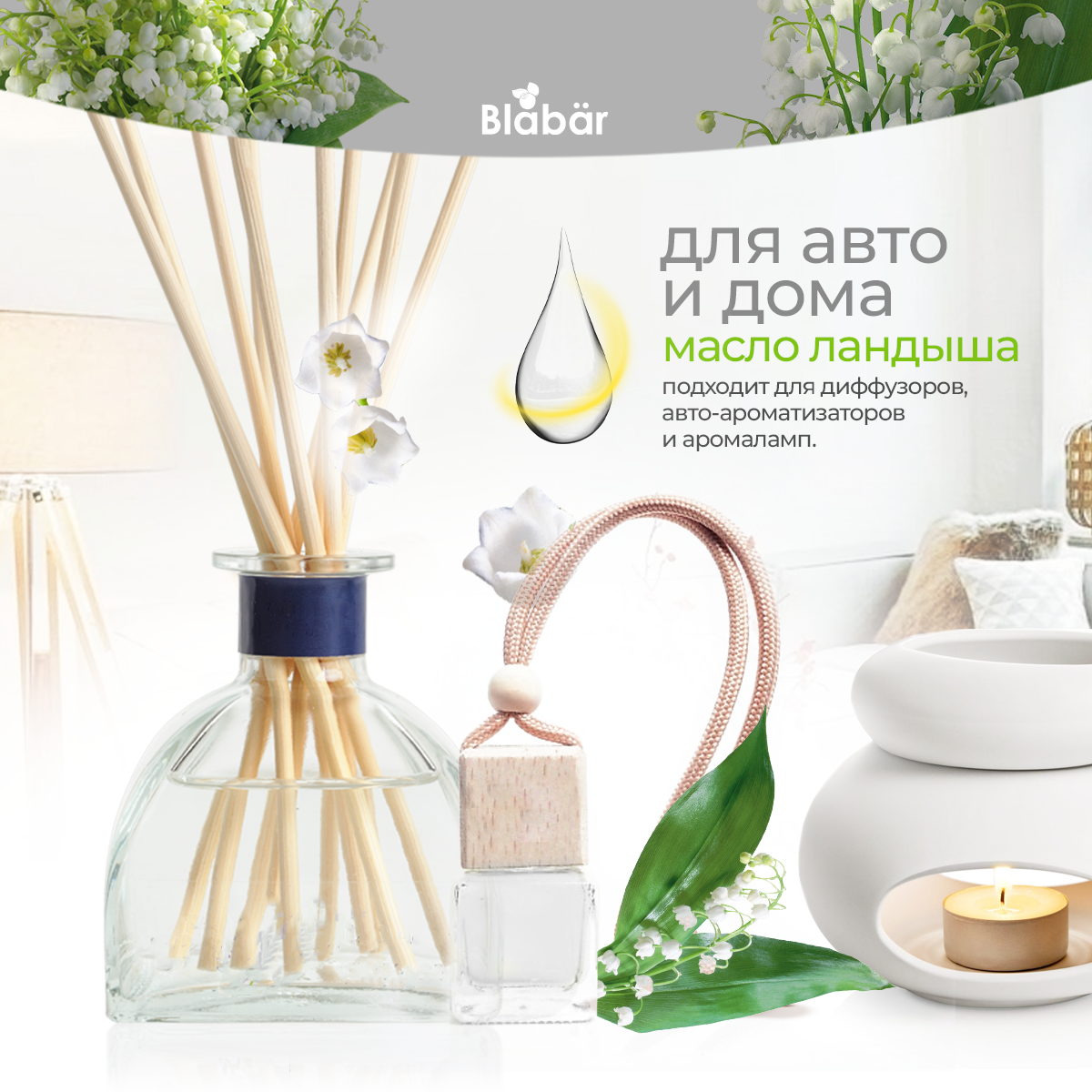 Набор ароматических масел "Blabar", ландыш, жасмин, василек 10 мл, 3 шт