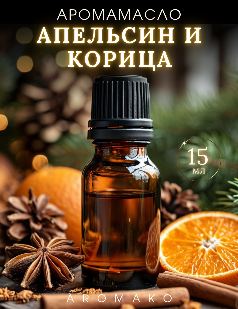 Купить Аромамасло Апельсин и корица AROMAKO 15 мл, для увлажнителя воздуха, диффузора, ароматерапии, ароматизация дома, офиса