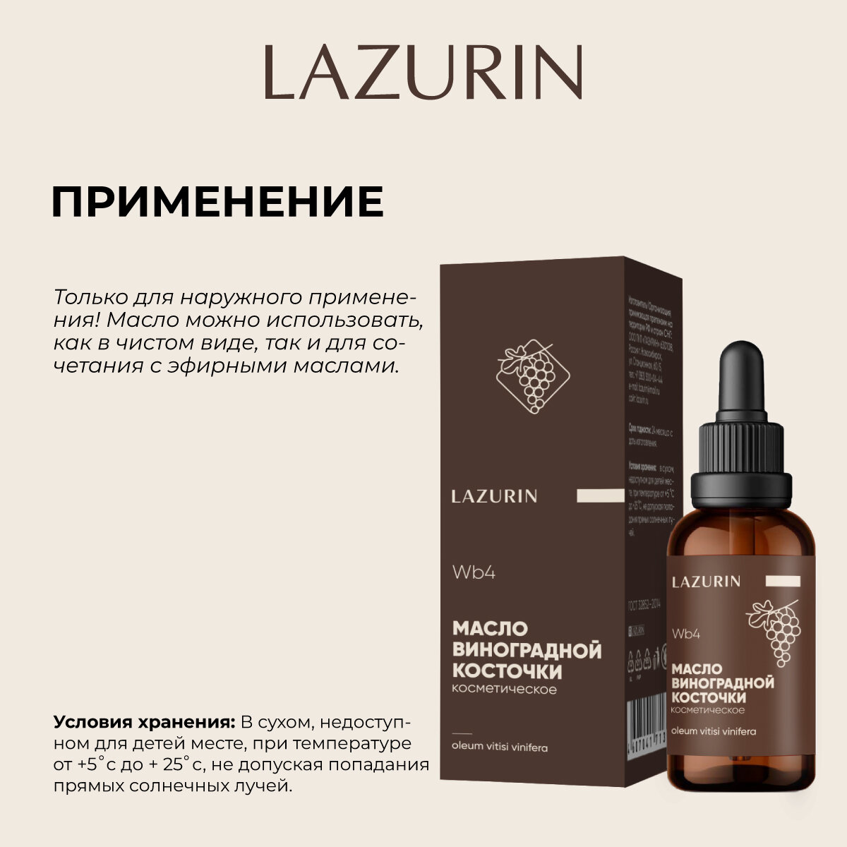Купить Масло косметическое LAZURIN виноградной косточки, для лица, тела, рук, ногтей, 30 мл.