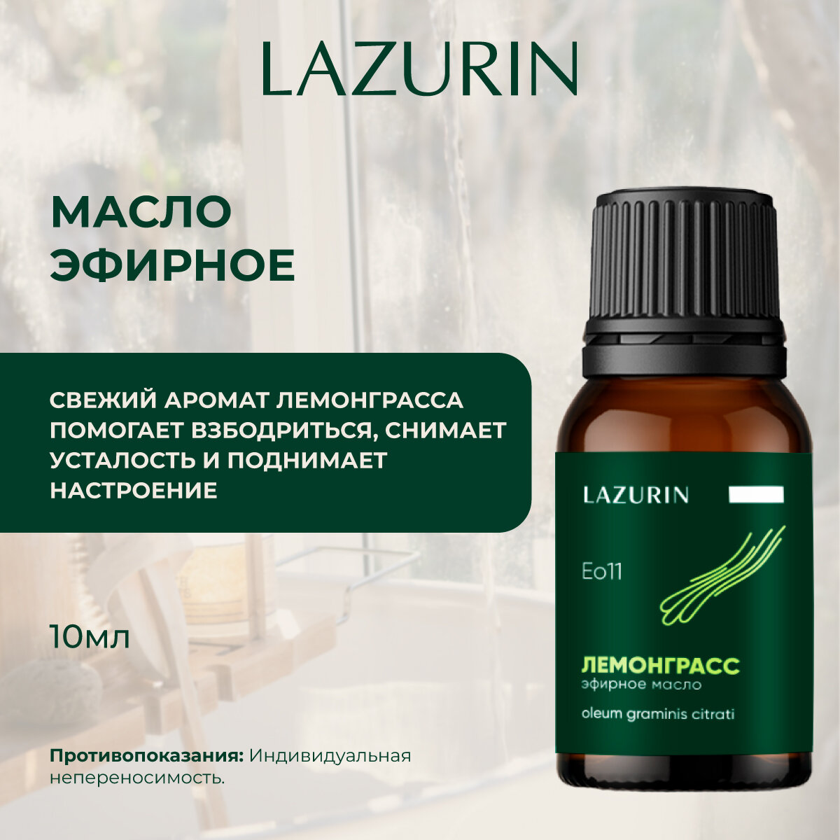 Купить Эфирное масло LAZURIN, лемонграсс. 100% натуральное. Для ванны, аромалампы, бани, 10 мл. От производителя.