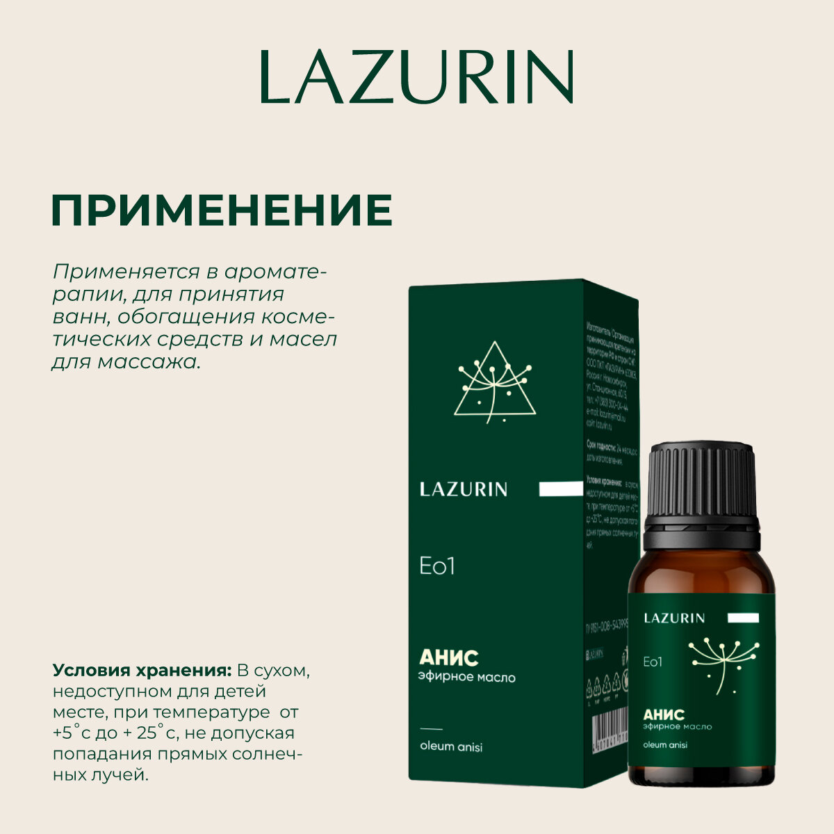 Купить Эфирное масло LAZURIN, анис. 100% натуральное. Для ванны, аромалампы, бани, 10 мл. От производителя.