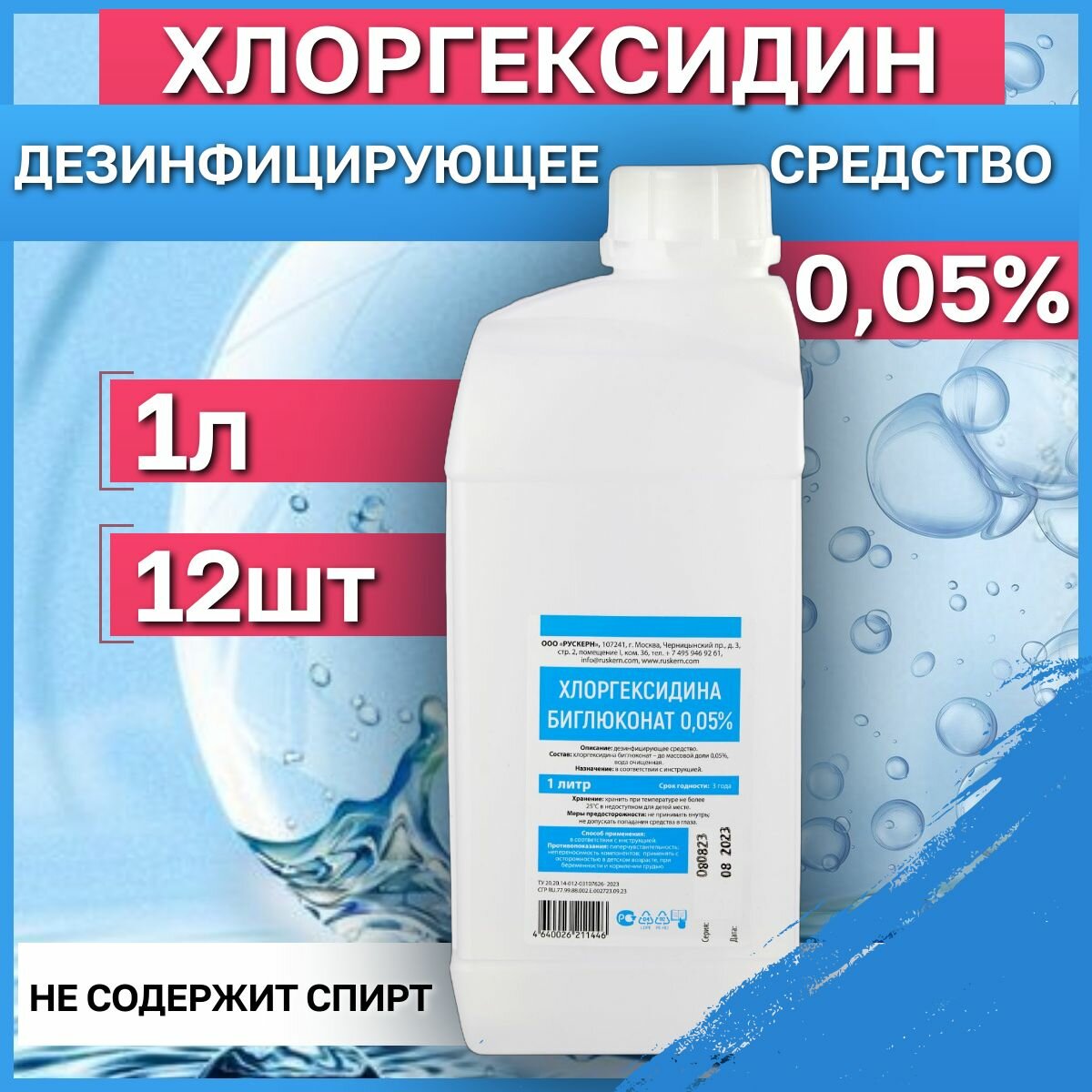 Купить Хлоргексидин 0,05%, 1л, 12 шт. Антисептик и дезинфицирующее средства для рук и инструментов.