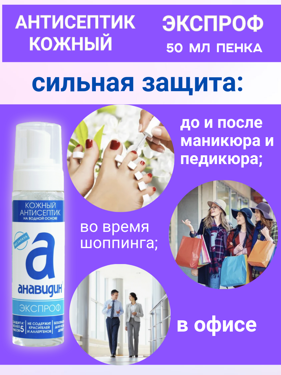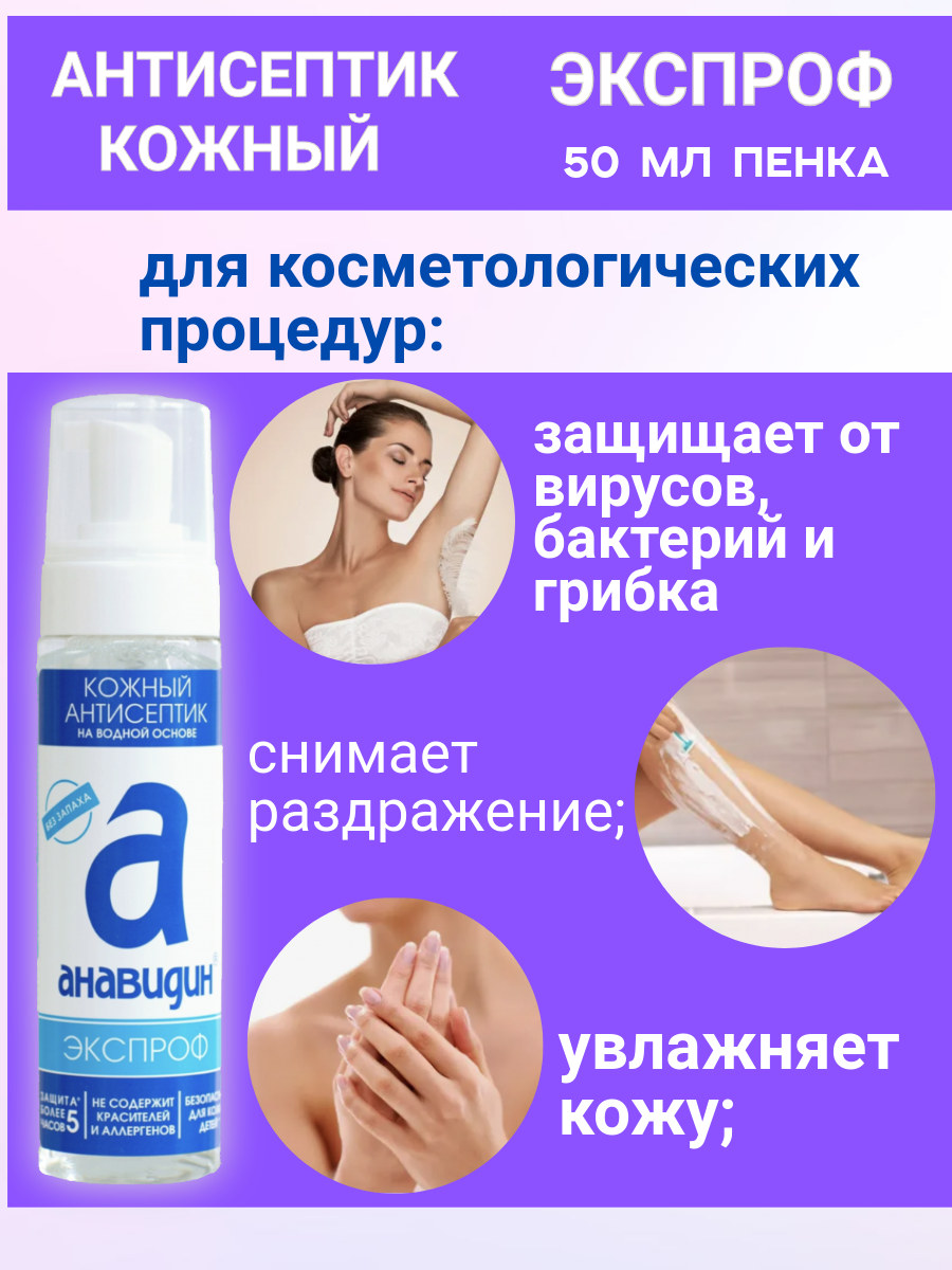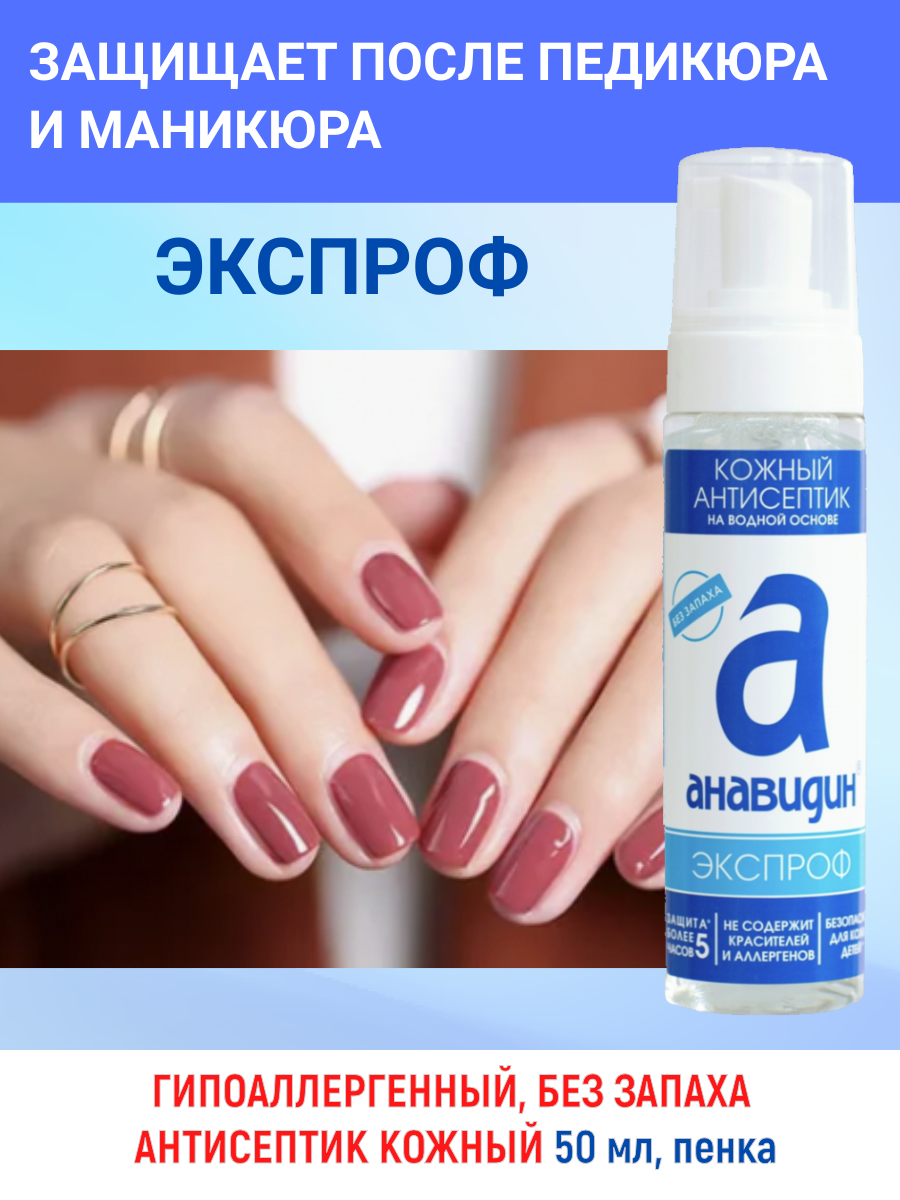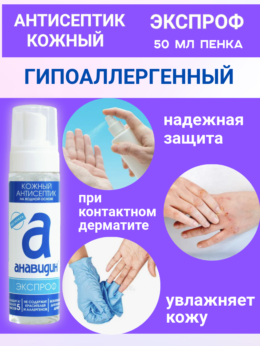 Анавидин-Экспроф, гипоаллергенный, без запаха антисептик кожный, пенка, 50 мл, на водной основе интересное: