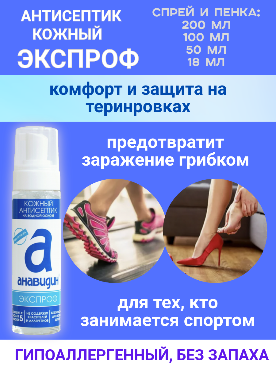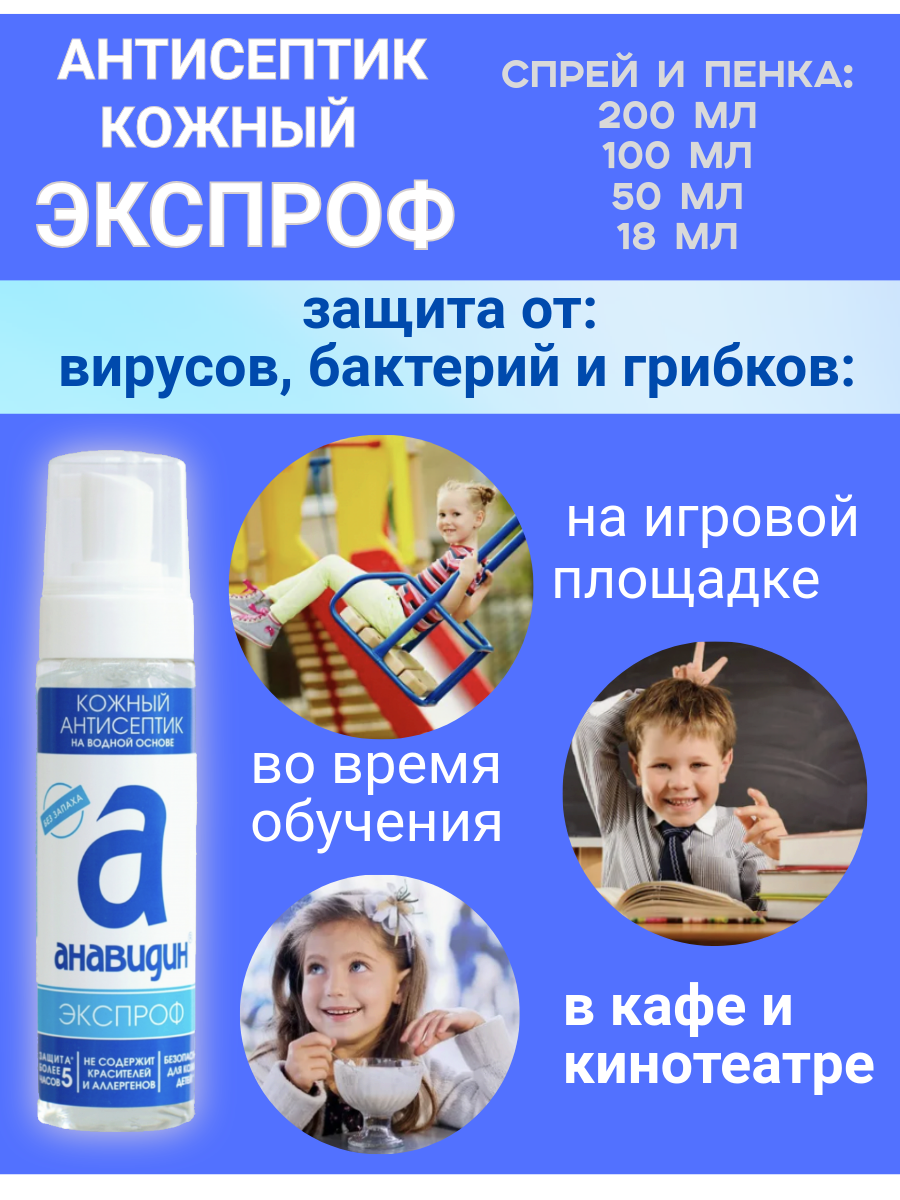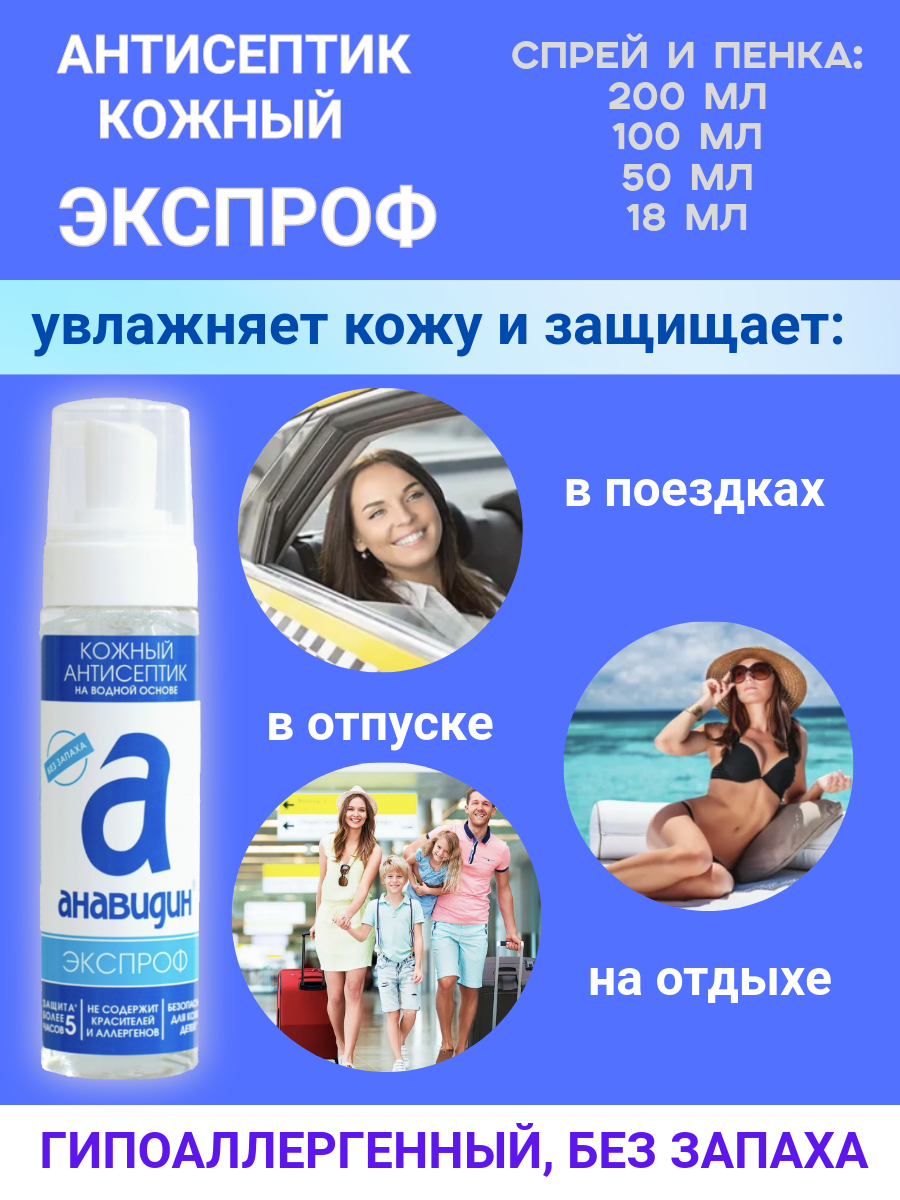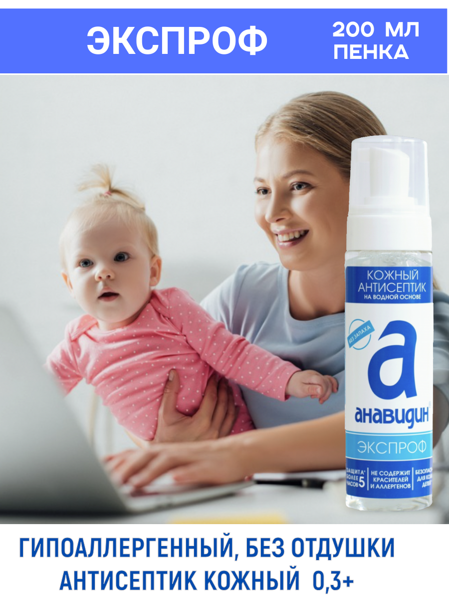 Анавидин Экспроф, гипоаллергенный, без запаха, Антисептик кожный, пенка, 200 мл, на водной основе интересное: