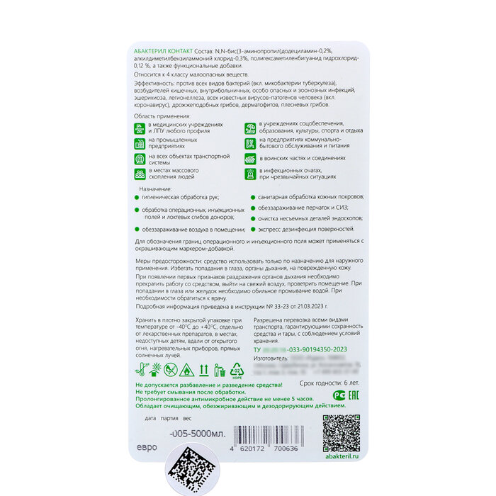 СохранитьАнтисептик для рук и поверхностей бесспиртовой 5 л, абактерил-контакт, дезинфицирующий, жидкость интересное: