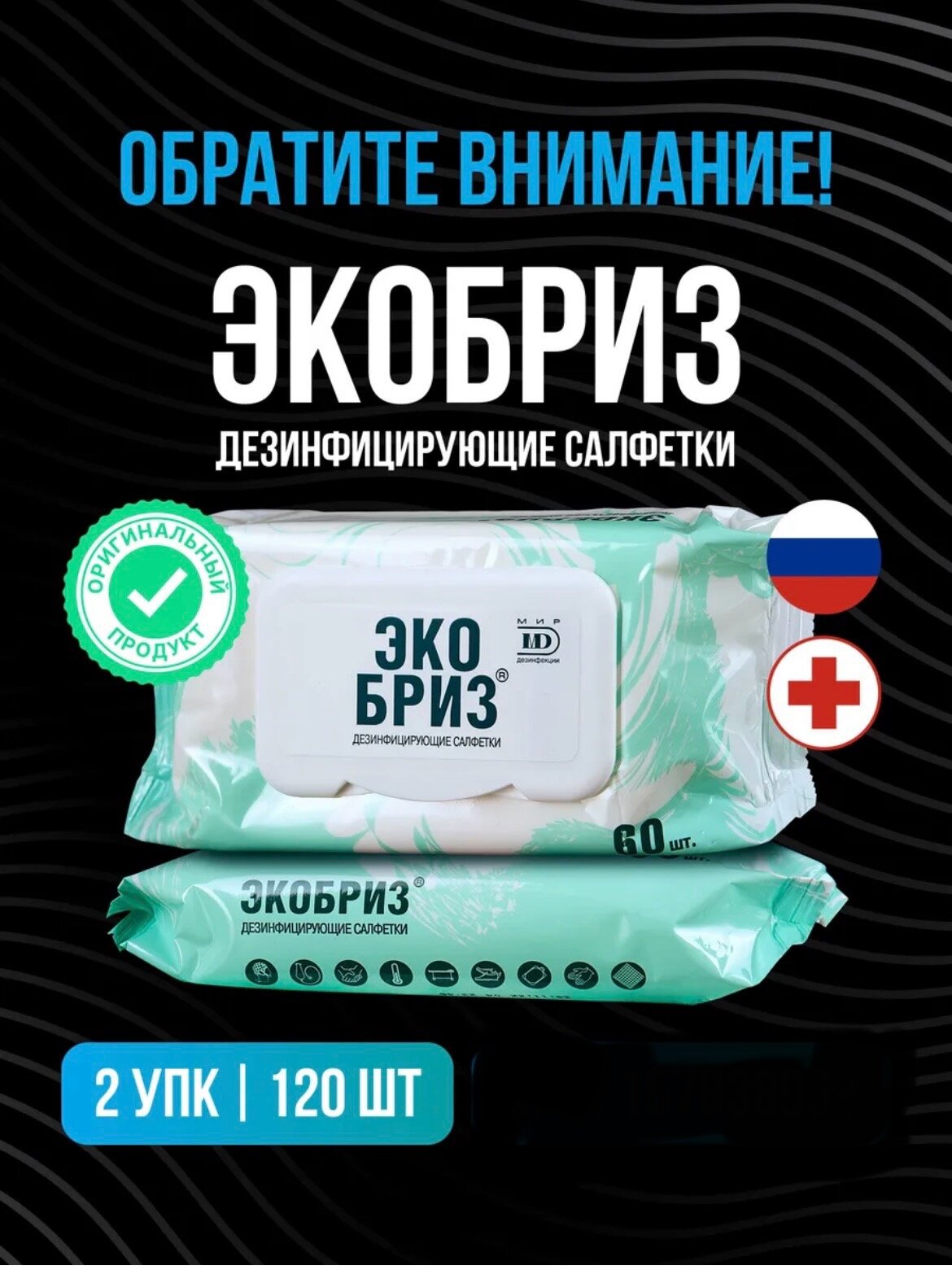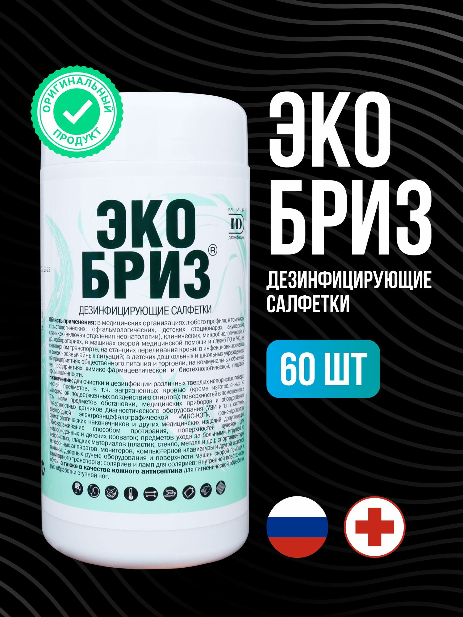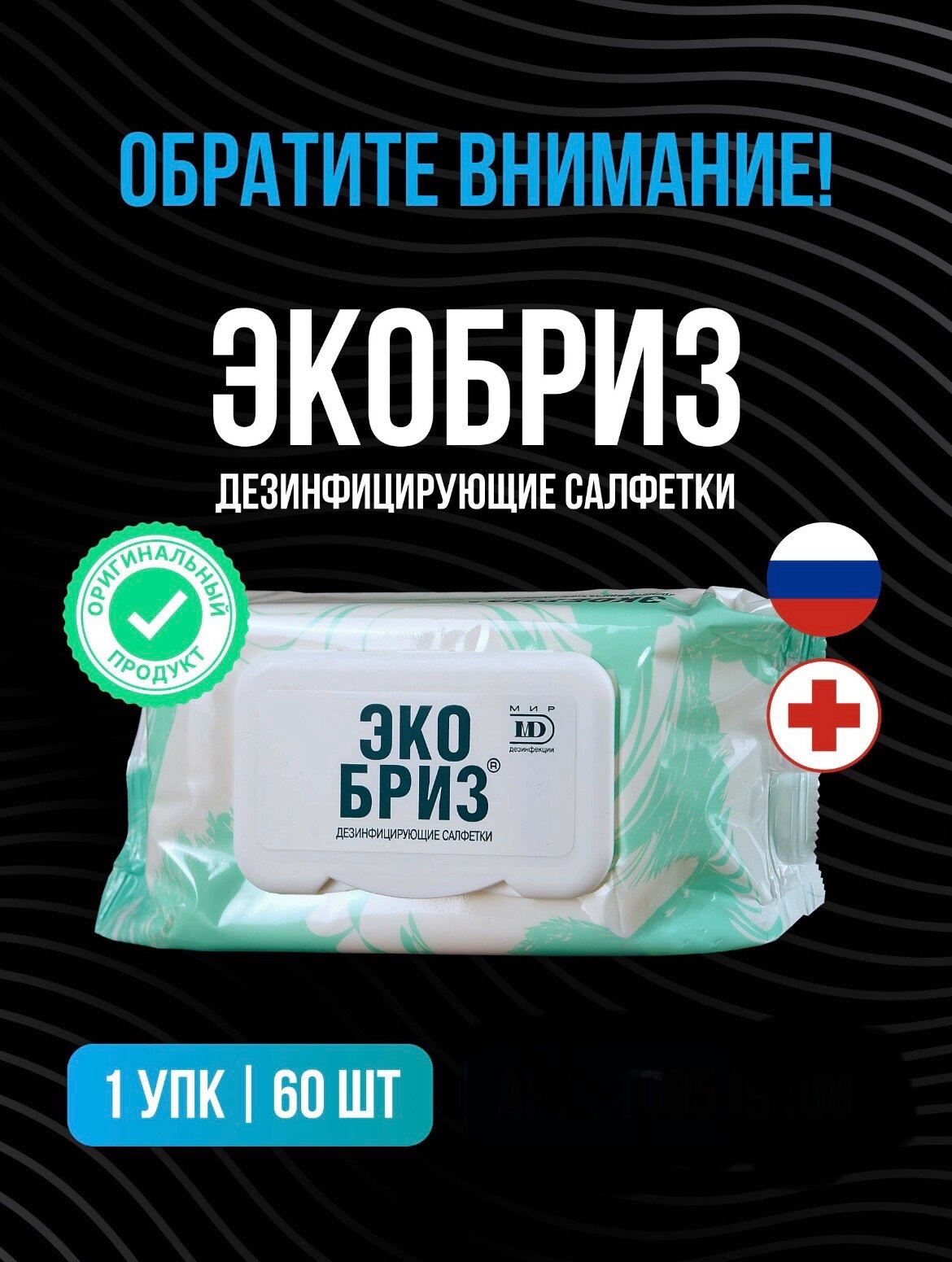 Дезинфицирующие салфетки Экобриз 60шт, Салфетки для дезинфекции / Обработка рук интересное: