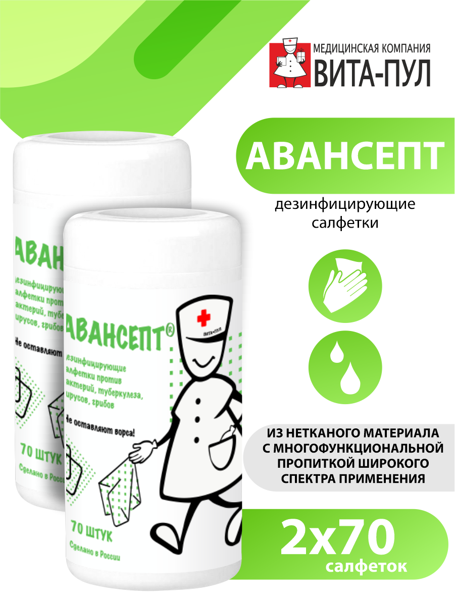 Дезинфицирующие салфетки Авансепт 70 штук белые х 2 шт. интересное: