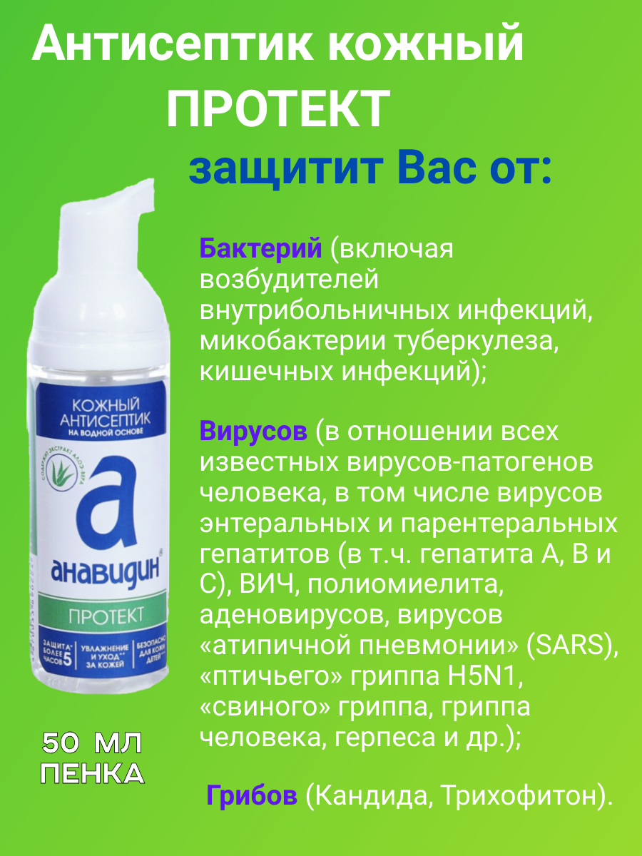 Анавидин Протект, антисептик кожный , 50 мл с экстрактом Алоэ-Вера интересное: