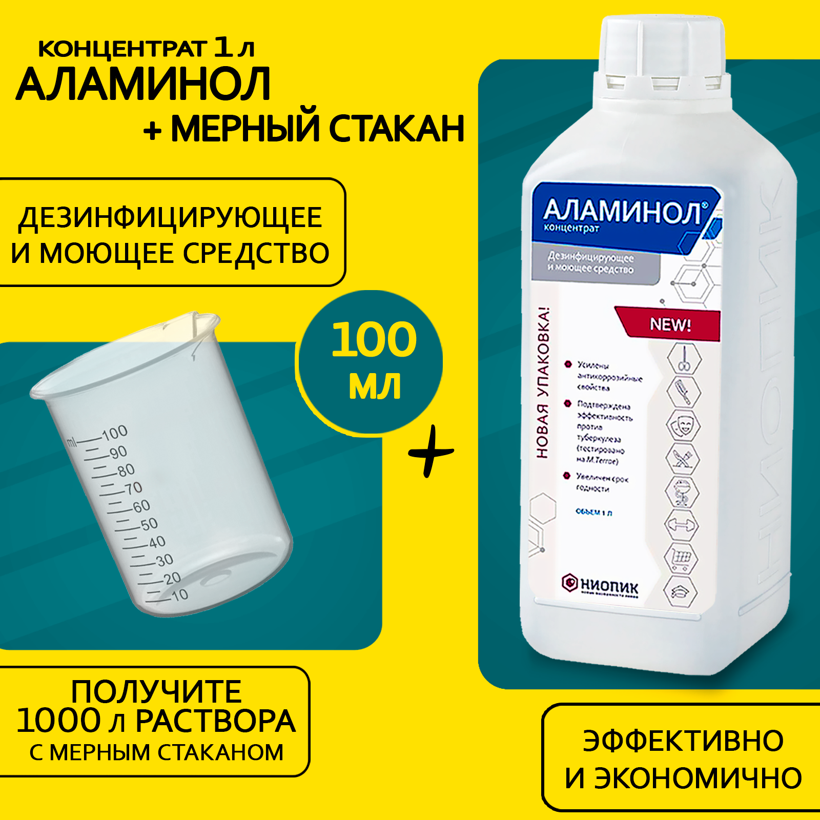 Дезинфицирующее моющее средство для инструментов и поверхностей аламинол концентрат 1 литр + мерный стакан интересное: