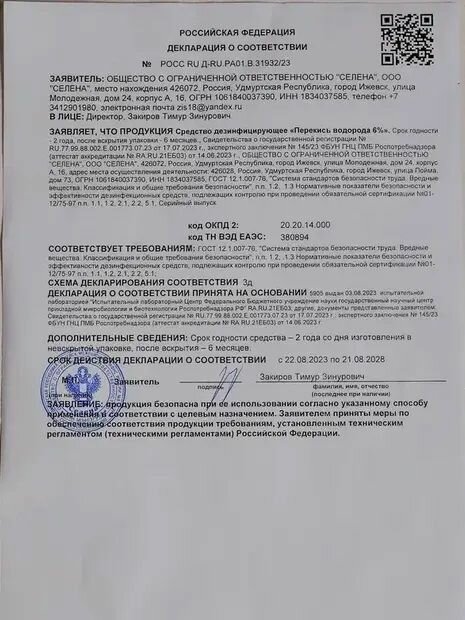 Перекись водорода 6% 1 л. Дезинфицирующее средство для инструментов , для поверхностей