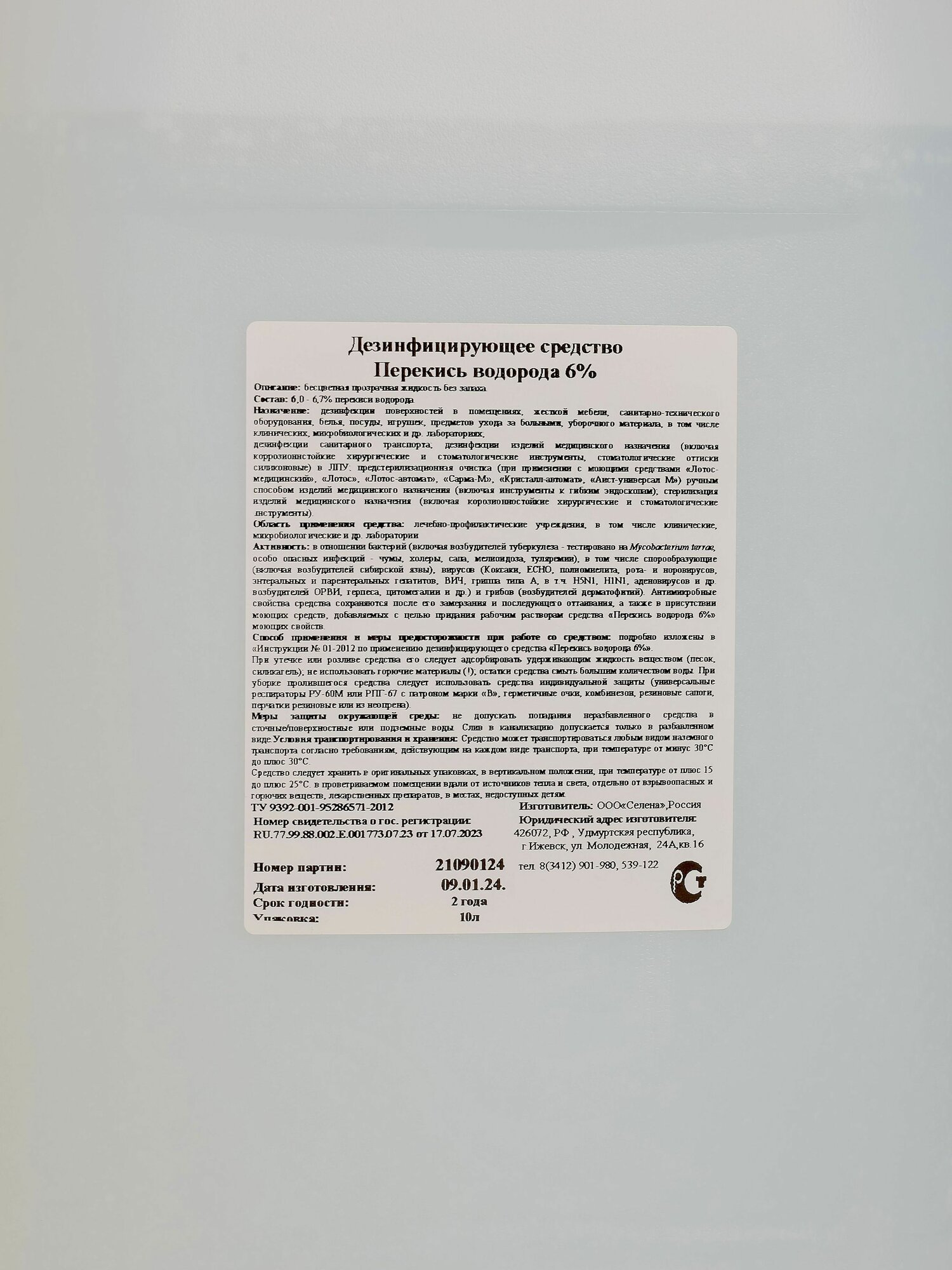 Купить Перекись водорода 6%, дезинфицирующие средство 10 л. Дезинфицирующее средства для поверхностей , обработка бассейна