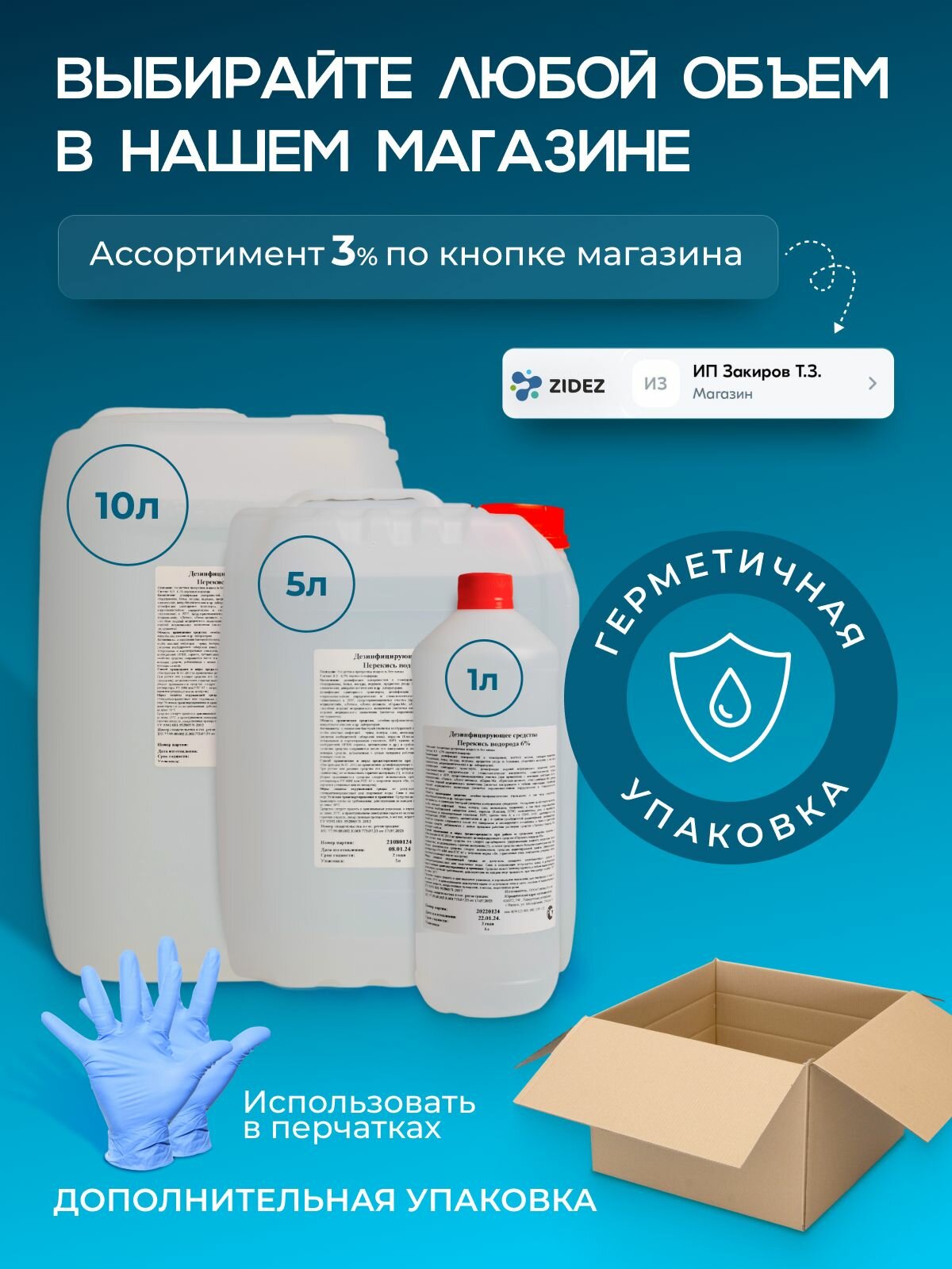 Перекись водорода 6% ZIDEZ, для бассейнов, для инструментов, для поверхностей, 5 л
