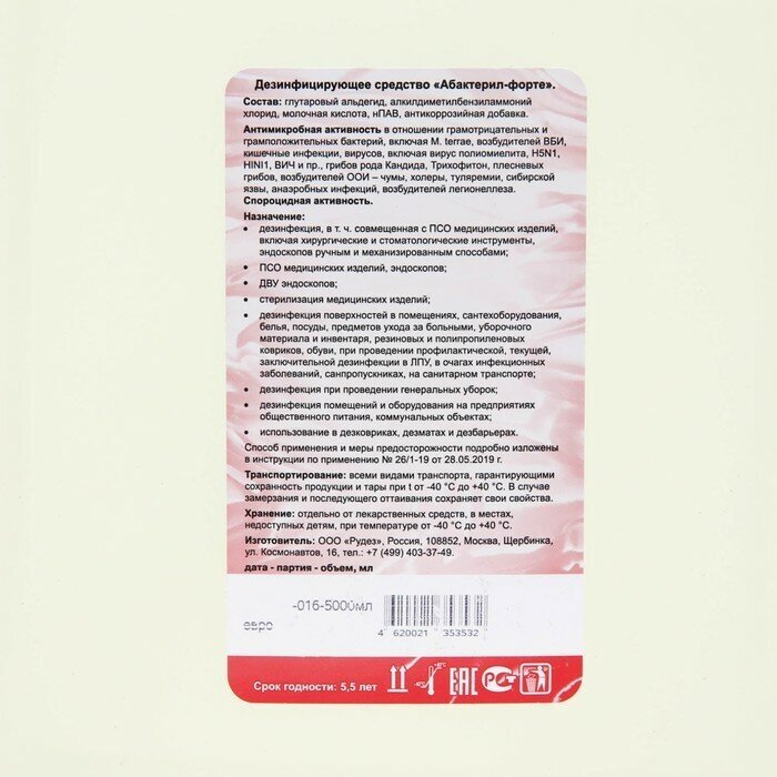 Купить Дезинфицирующее средство с вирулицидной активностью ГОСТ 12.1.007-76 абактерил-форте 5 л концентрат