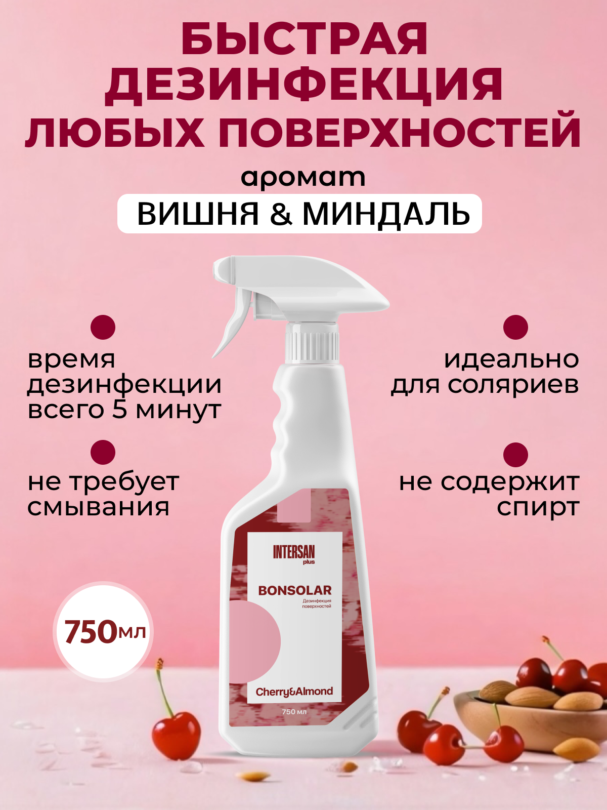 Купить Экспресс-дезинфекция Бонсолар 750 мл вишня-миндаль