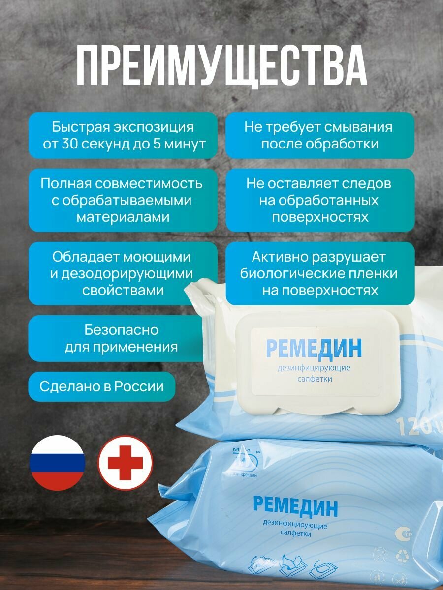 Дезинфицирующие салфетки Ремедин 120шт/2 упаковки в комплекте интересное: