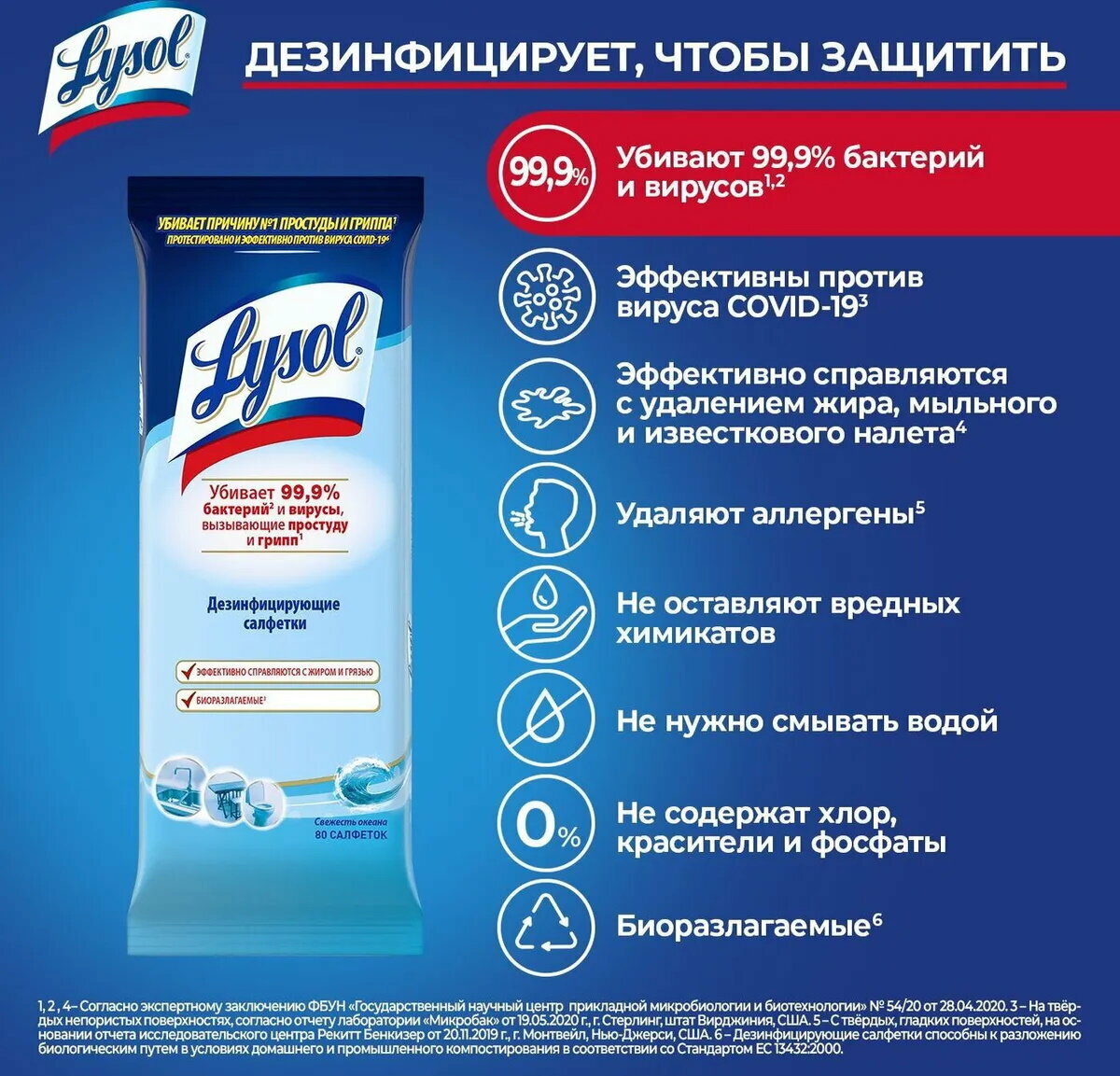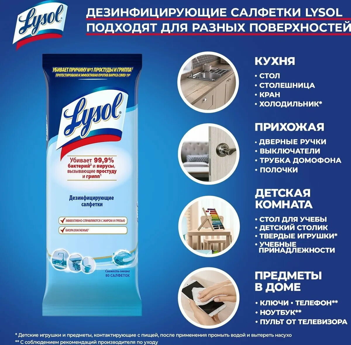 Lysol Дезинфицирующие салфетки Свежесть океана, 80 шт интересное: