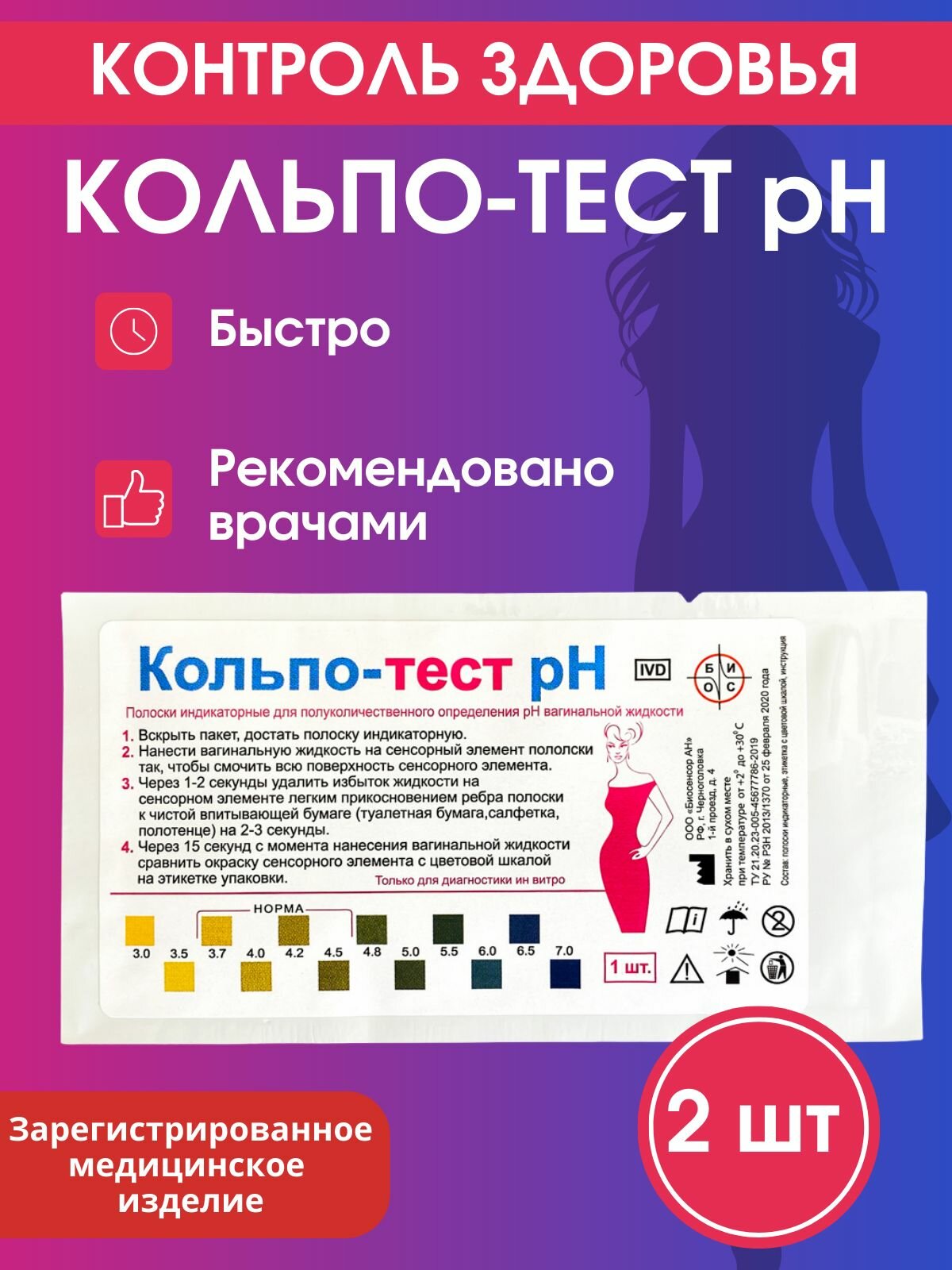 Кольпо-Тест pH, Тест полоски для определения рН вагинальной жидкости, 2 шт интересное: