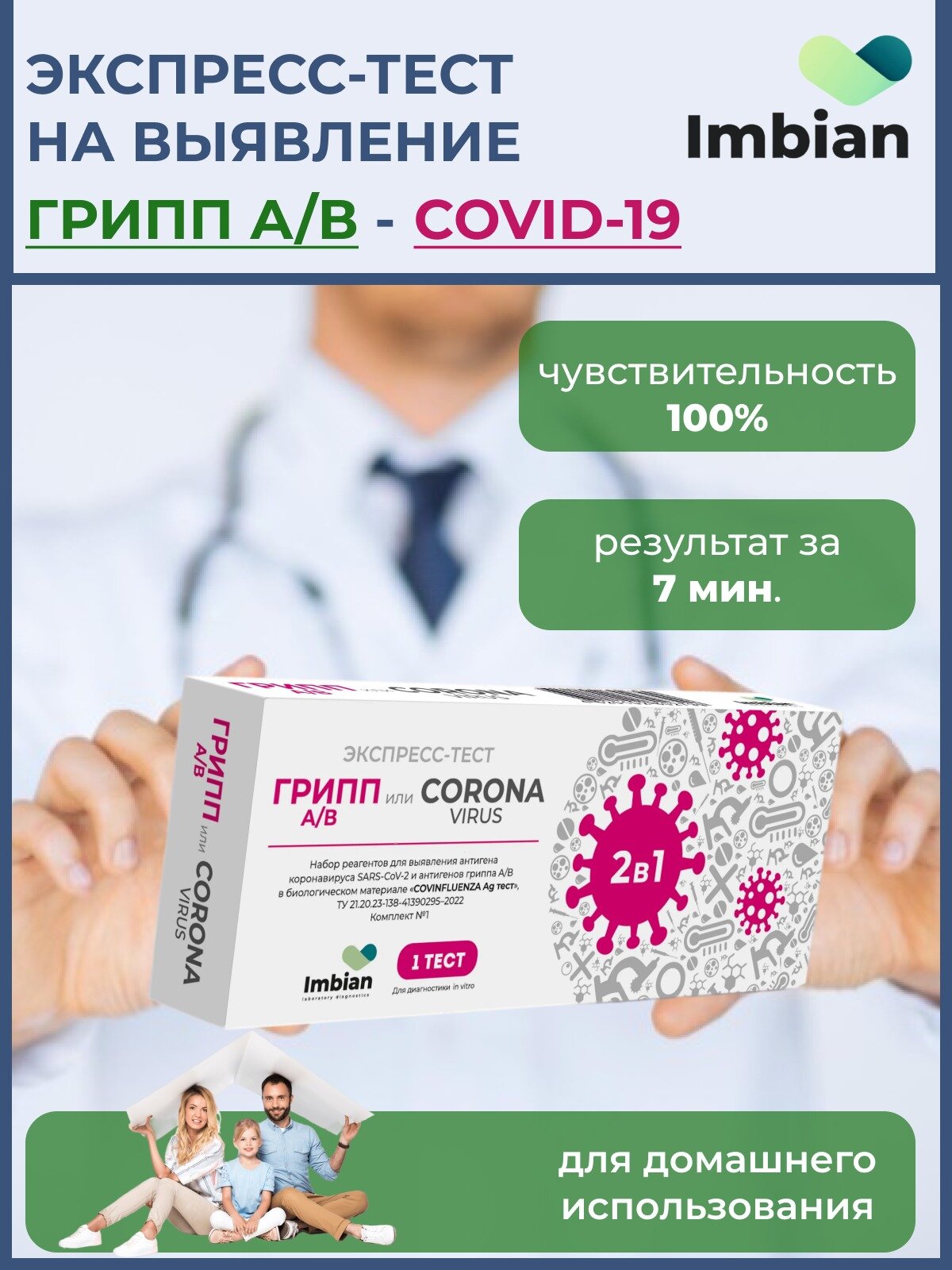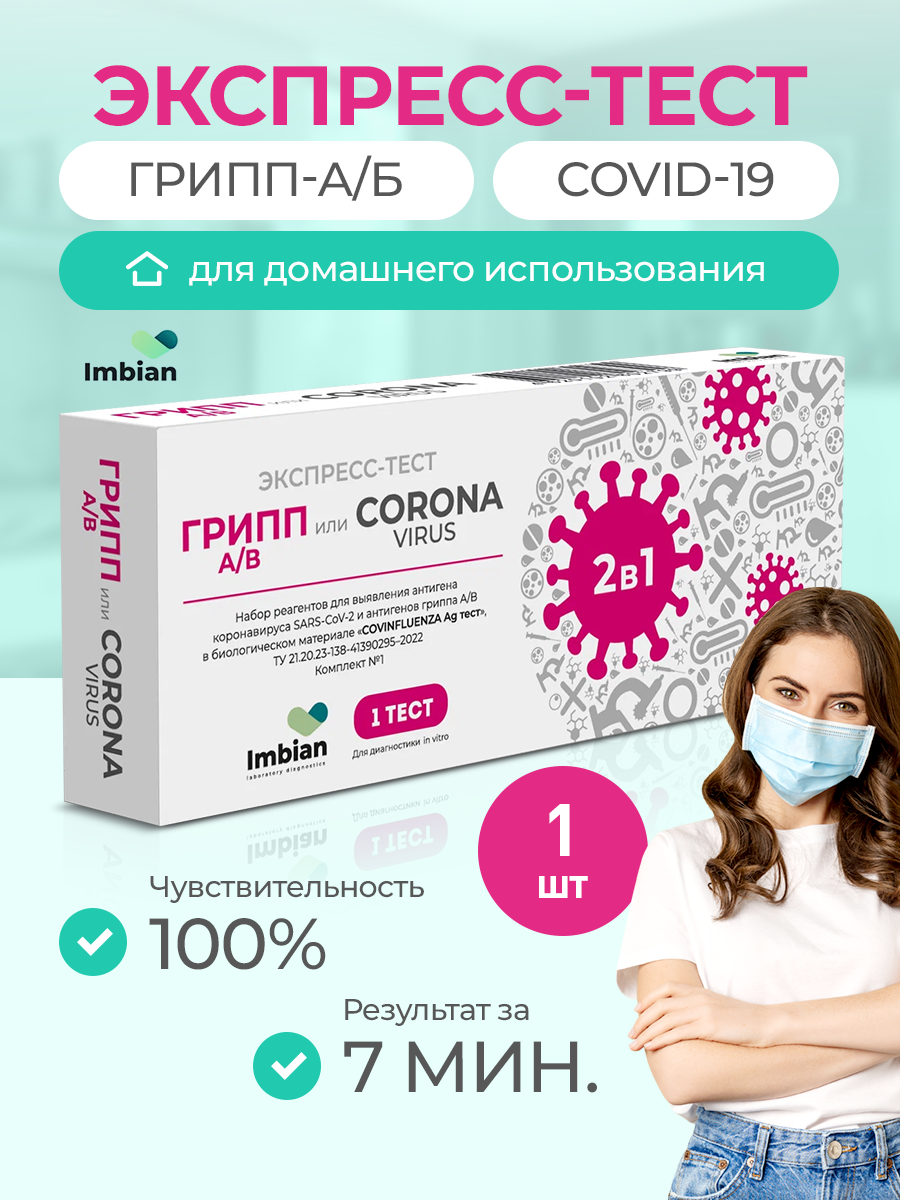 Купить Экспресс-тест на коронавирус и грипп Imbian 2 в 1, для домашнего использования, 1 шт