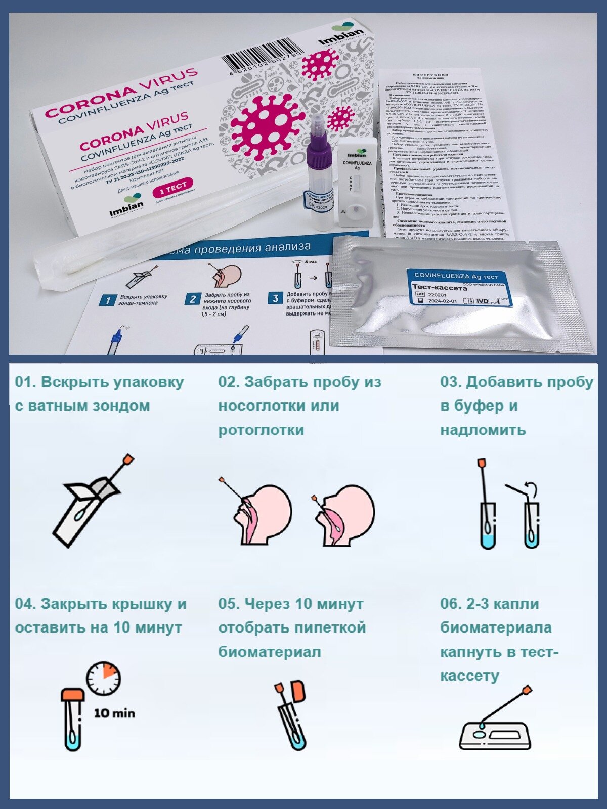 Экспресс-тест на коронавирус и грипп Imbian 2 в 1, для домашнего использования, 5 шт