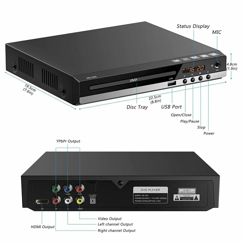 DVD-плеер VCD CD-диски Мультимедийная машина HDMI-совместимый AV-выход с пультом дистанционного управления и AV-кабелем интересное: