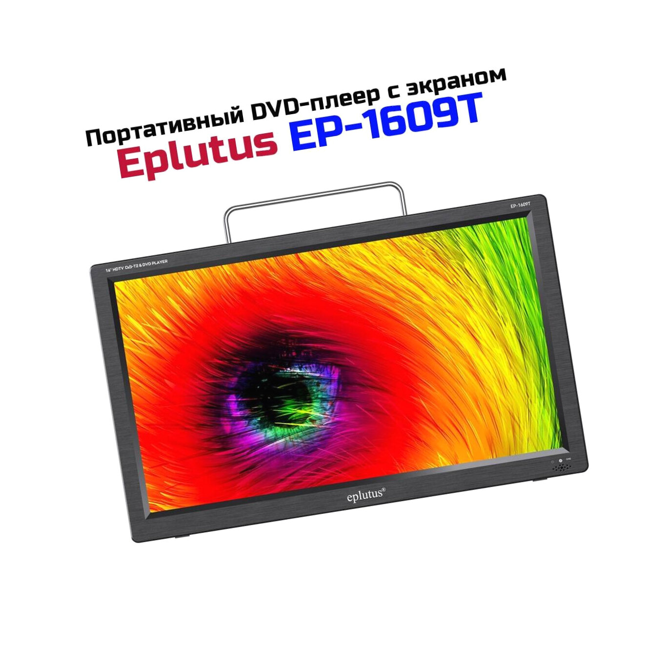 Купить Портативный DVD проигрыватель DVB-T2 16" Эплутус Мод: 1609. Т-EP, переносной DVD плеер с экраном 1920x1080р. Соотношение сторон экрана 16:10