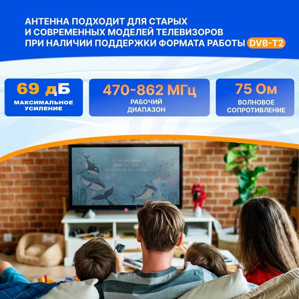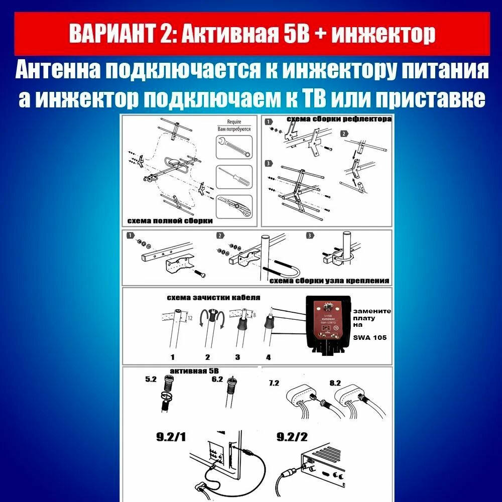 МИР 8 (3 в 1 полный комплект до 100 км) Антенна для приема цифровых каналов, штекер, 5В и 12В усилитель, инжектор блок питания кронштейн кабель