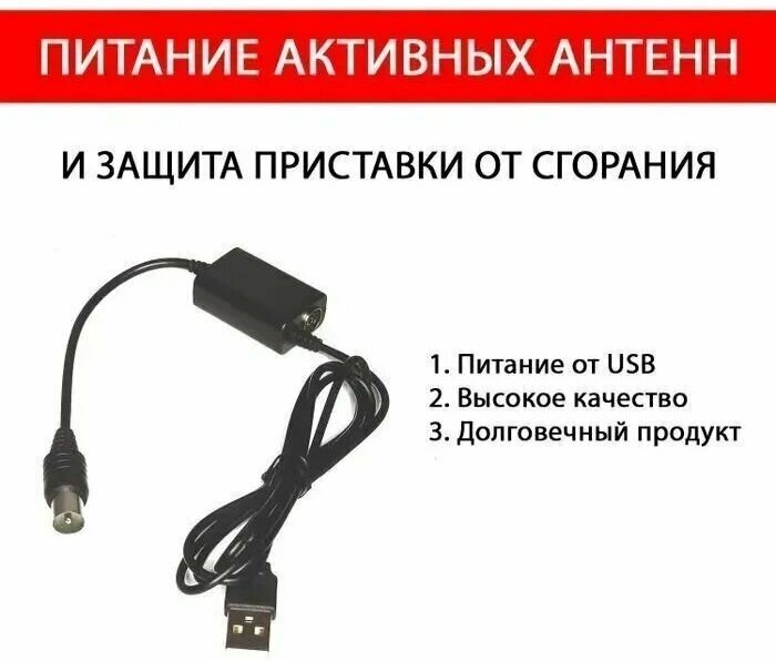 Антенна для цифрового тв комнатная МИР-АНТЕНН-Дон-8-А2 с усилителем (5В), для ТВ, 360 градусов + инжектор питания + кабель