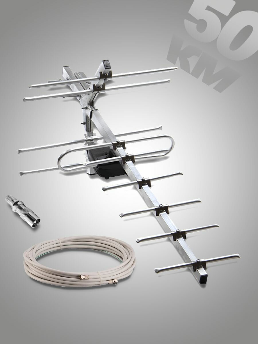 Антенна для цифрового тв уличная, для телевизора, МИР-8-P, с усилителем (ПС), для ТВ + кабель