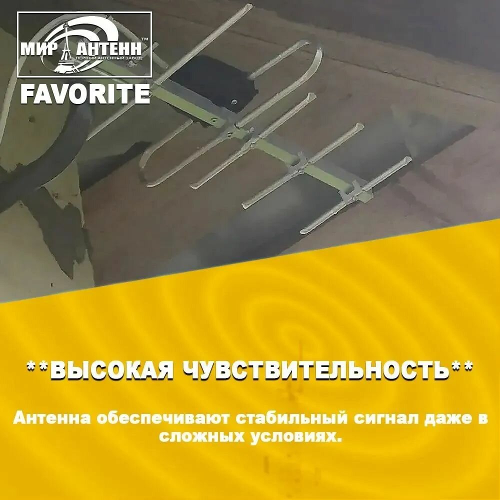 Антенна для цифрового тв уличная, для телевизора, Фаворит-8-P, с усилителем (ПС), для ТВ + кабель