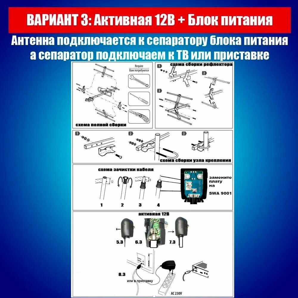 Готовый комплект МИР 12 - Антенна для цифрового тв уличная, для телевизора, с усилителем 5В