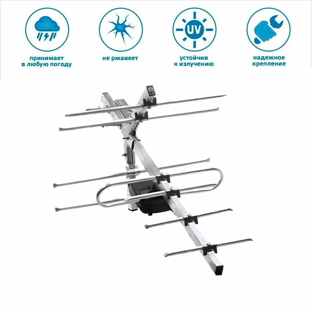 Антенна для цифрового тв уличная, для телевизора, МИР-8-P, с усилителем (ПС), для ТВ + кабель