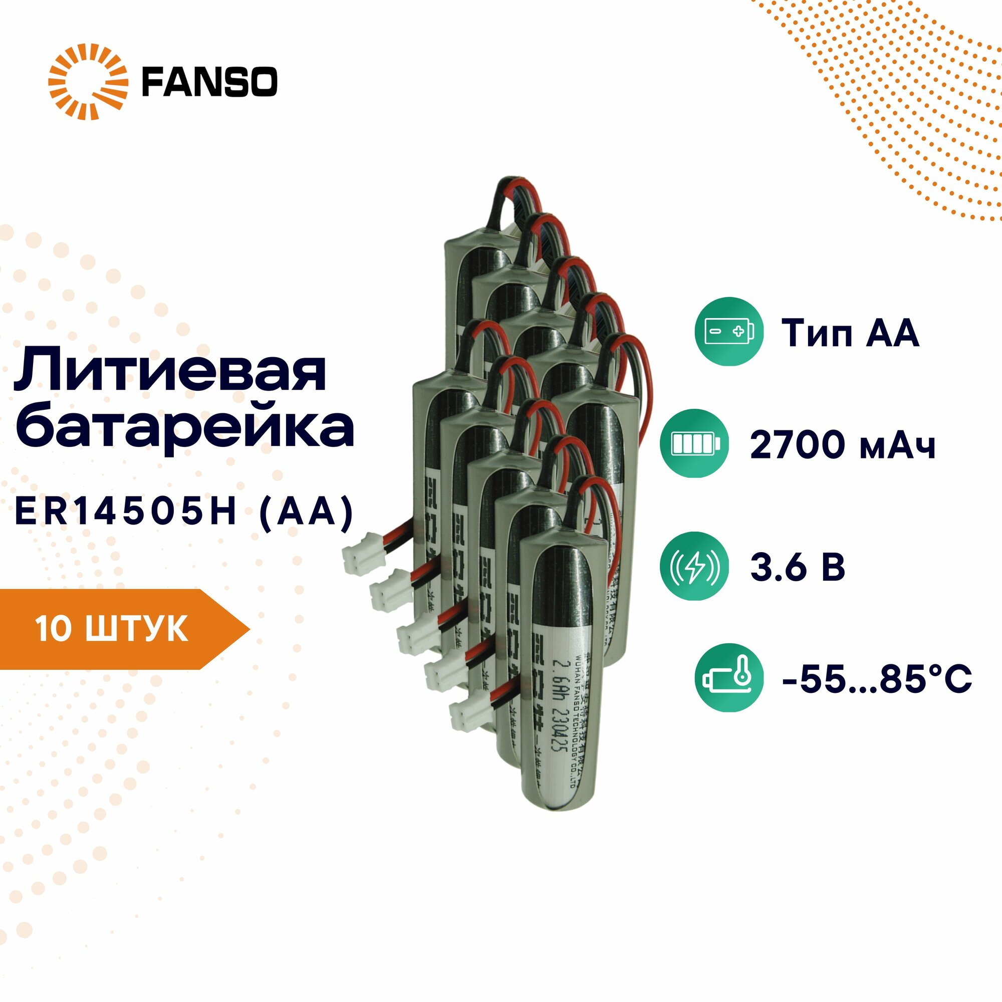 FANSO ER14505H-LD/-PHR-02 Литиевая батарейка AA, 10 шт, для счётчиков и датчиков, с проводами и разъёмом, 3,6В, ёмкость 2600 мАч, коннектор PHR-02 интересное: