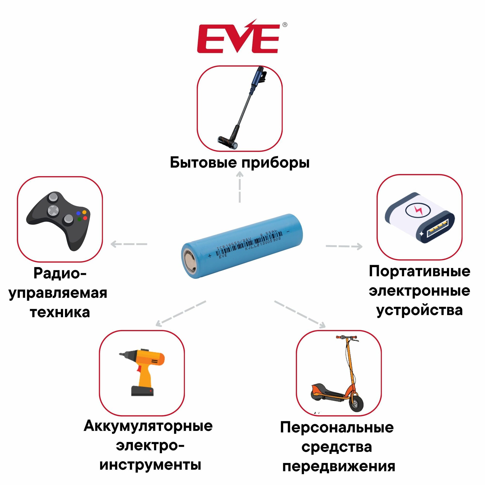 Аккумулятор 18650 2550 мАч ICR18650/26V EVE Energy, 3.6 В Li-Ion среднетоковый с плоским электродом, 4 штуки интересное:
