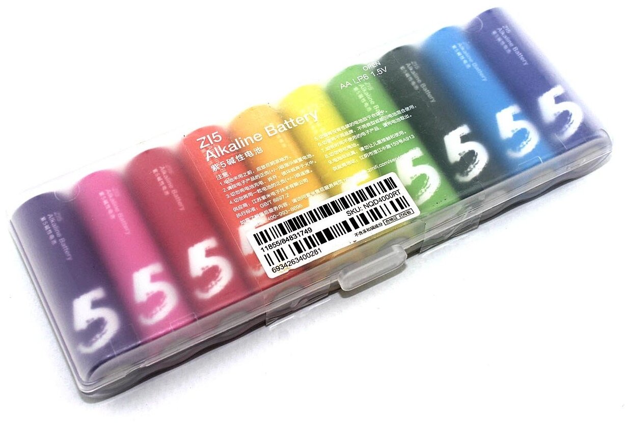 Батарейки алкалиновые Xiaomi (Mi) Rainbow ZI5 типа AА, разноцветные, набор из 10 шт, (пальчиковые) интересное: