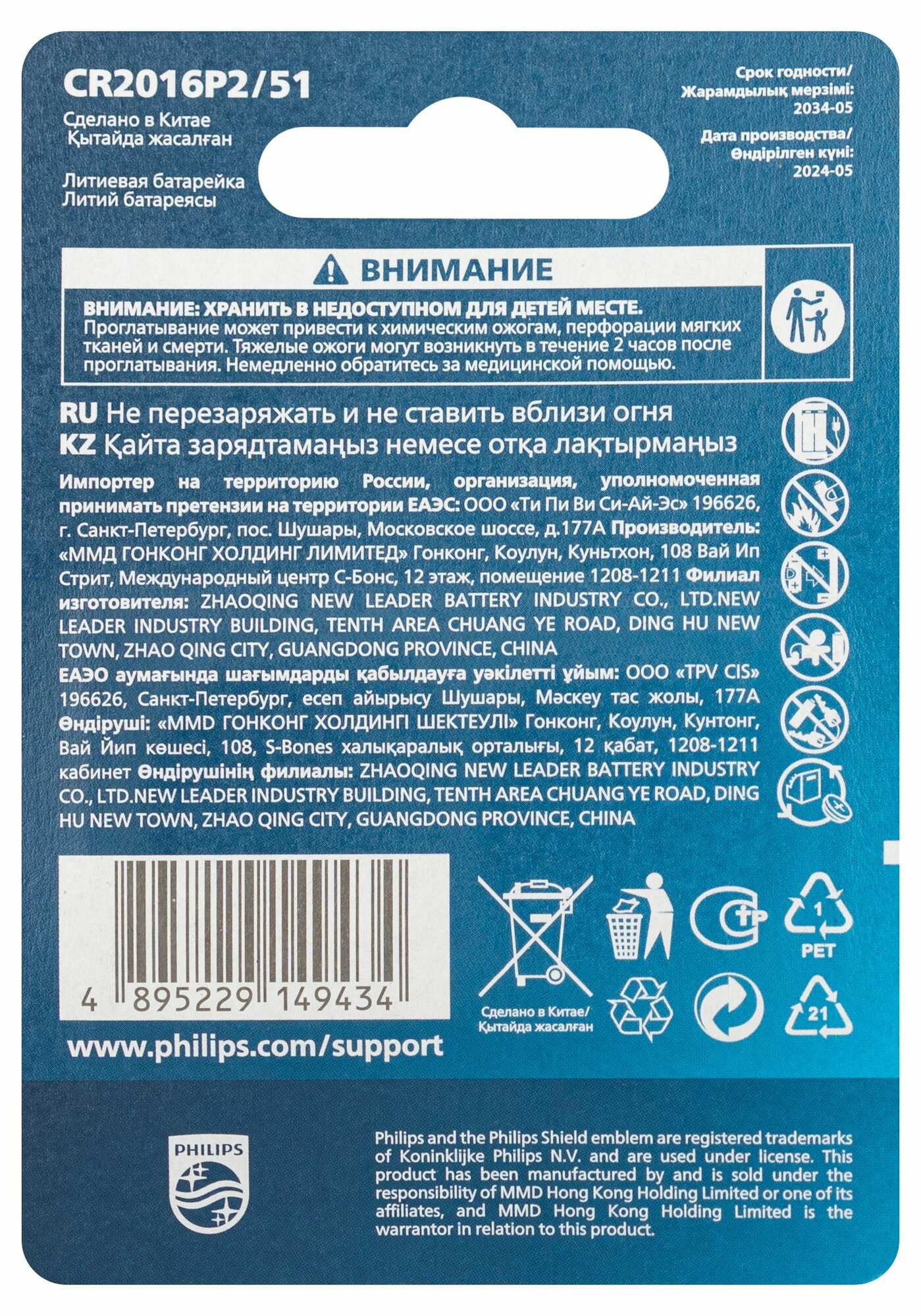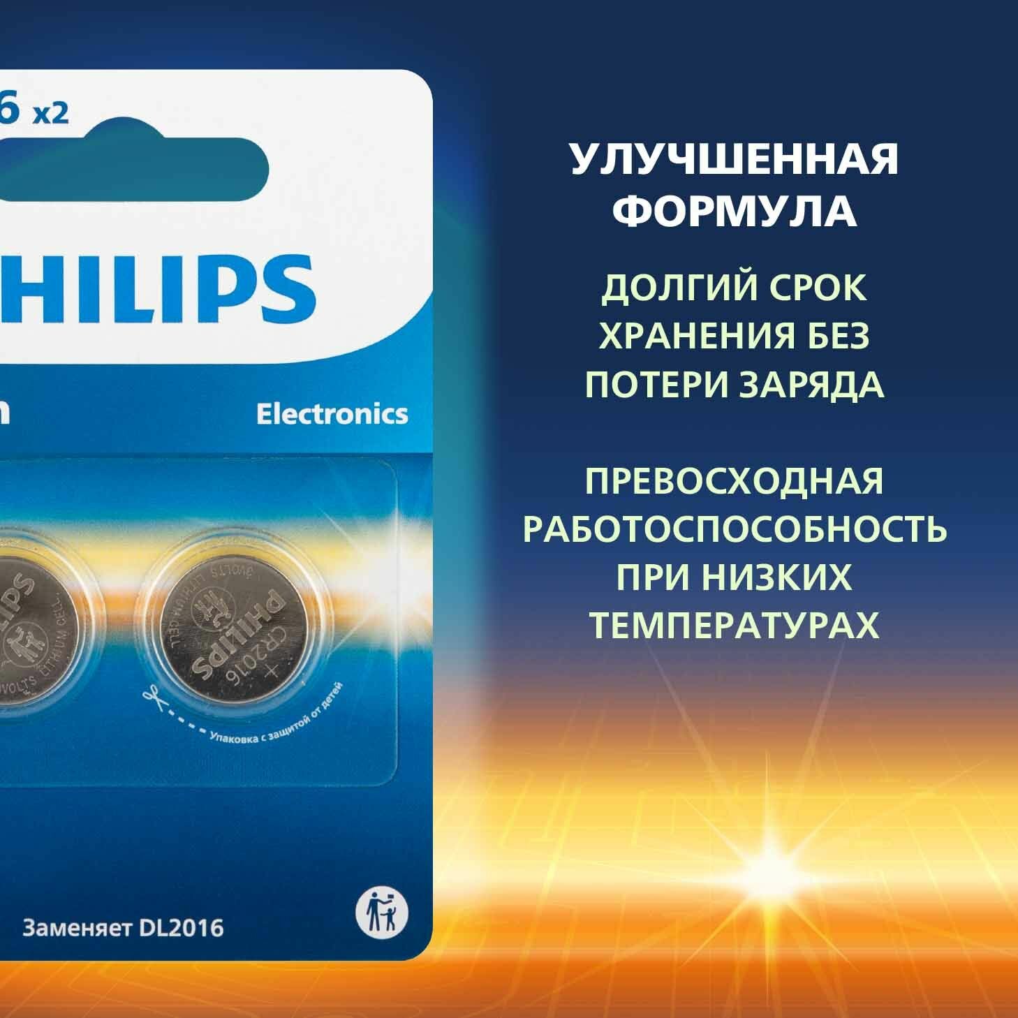 Батарейки Philips CR2016P2/51 литиевые 2шт. CR2016-2BL интересное: